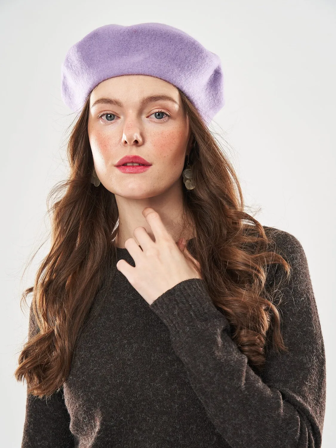 Однотонний вовняний берет класичного покрою, виконаний зі шільної та приємної на дотик вовни. Згори характерна антенка для зручного знімання. Має прихований шов та носиться будь-якою стороною. Незамінний атрибут для поціновувачів класики. Вовняна структура захищає від вітру весною та восени і зігріває взимку. Носиться з пальто, куртками та плащами.