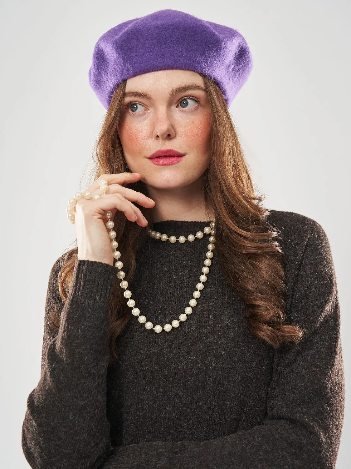 Берет класичний однотонний вовняний 56-58 Fortune Фіолетовий