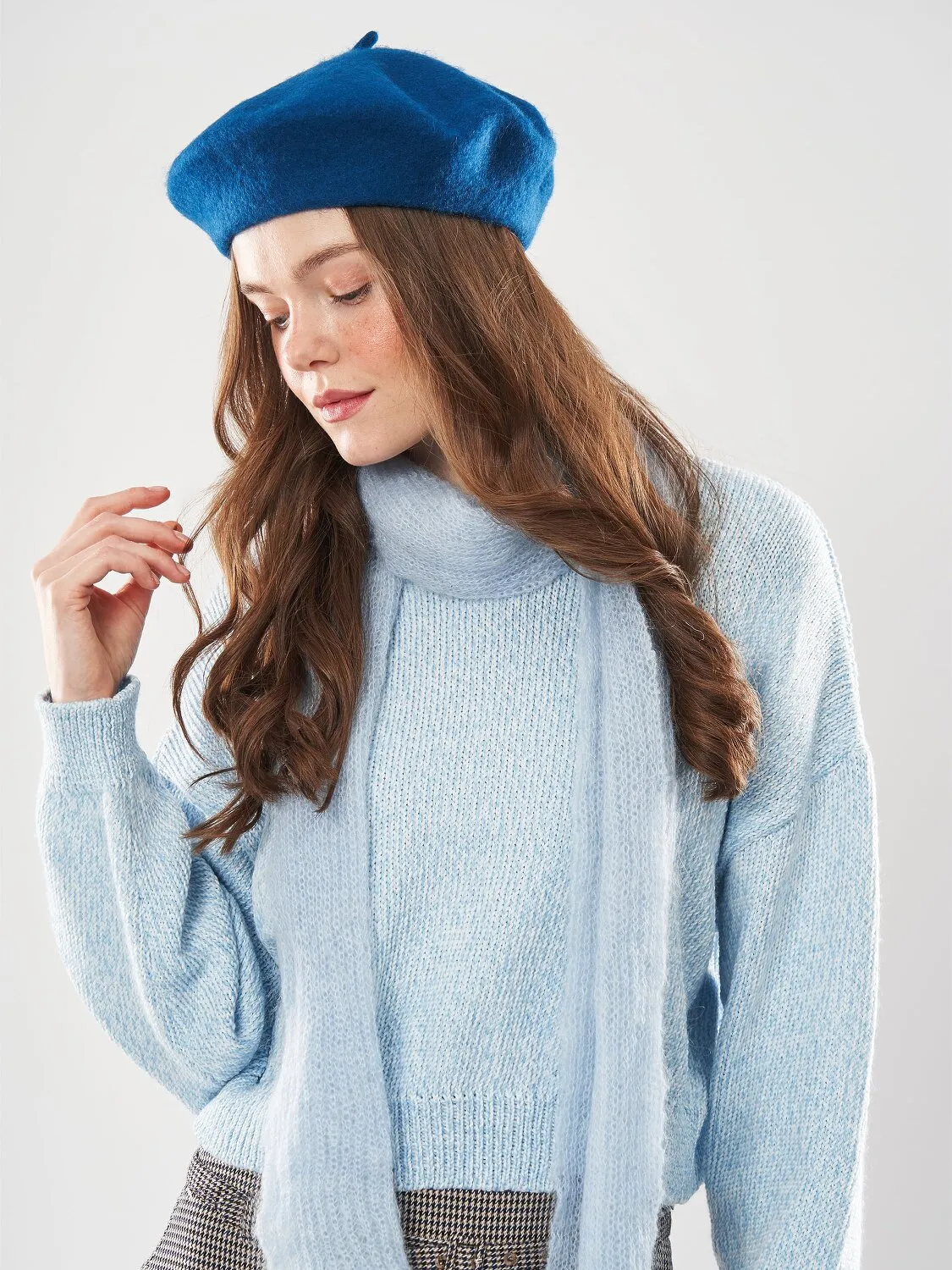 Однотонний вовняний берет класичного покрою, виконаний зі шільної та приємної на дотик вовни. Згори характерна антенка для зручного знімання. Має прихований шов та носиться будь-якою стороною. Незамінний атрибут для поціновувачів класики. Вовняна структура захищає від вітру весною та восени і зігріває взимку. Носиться з пальто, куртками та плащами.