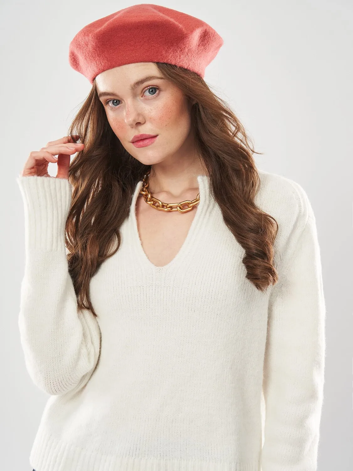 Однотонний вовняний берет класичного покрою, виконаний зі шільної та приємної на дотик вовни. Згори характерна антенка для зручного знімання. Має прихований шов та носиться будь-якою стороною. Незамінний атрибут для поціновувачів класики. Вовняна структура захищає від вітру весною та восени і зігріває взимку. Носиться з пальто, куртками та плащами.