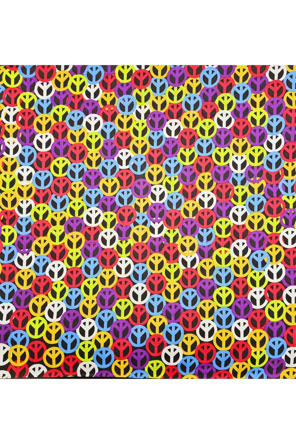 Бавовняна бандана-хустка з принтом "Peace". Розмір 55 на 55 см (похибка 2см.). Має близько 10 способів зав’язування на голову, шию, руки та ноги. Є важливим елементом різних субкультур. Завдяки якісній матерії захищає від сонця та пилу. Також використовується на кухні як захист від потрапляння волосся. Може декорувати різні аксесуари та транспортні засоби.