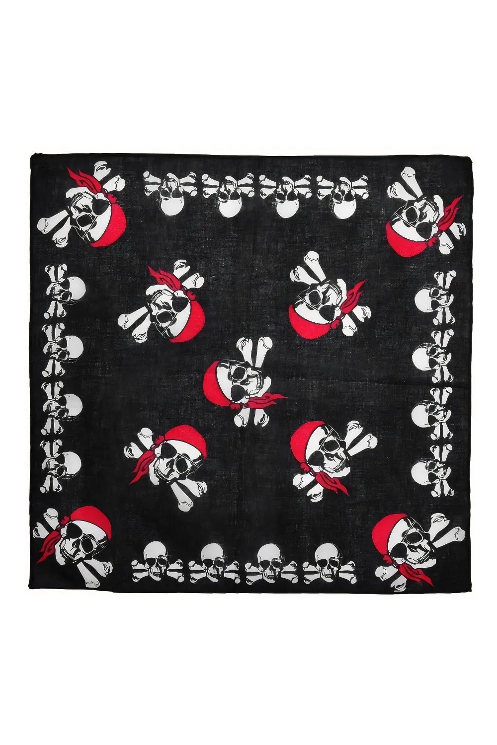 Бавовняна бандана-хустка з принтом "піратський візерунок” навхрест. Розмір 55 на 55 см (похибка 2см.). Має близько 10 способів зав’язування на голову, шию, руки та ноги. Є важливим елементом різних субкультур. Завдяки якісній матерії захищає від сонця та пилу. Також використовується на кухні як захист від потрапляння волосся. Може декорувати різні аксесуари та транспортні засоби.
