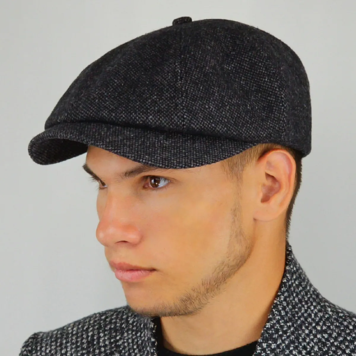 Твідова кепка восьмиклинка хуліганка з подовженим дашком та напусками по бокам. Добре тримає форму. Всередині є вушка та підкладка на байці. Рекомендуємо на осінь та зиму.