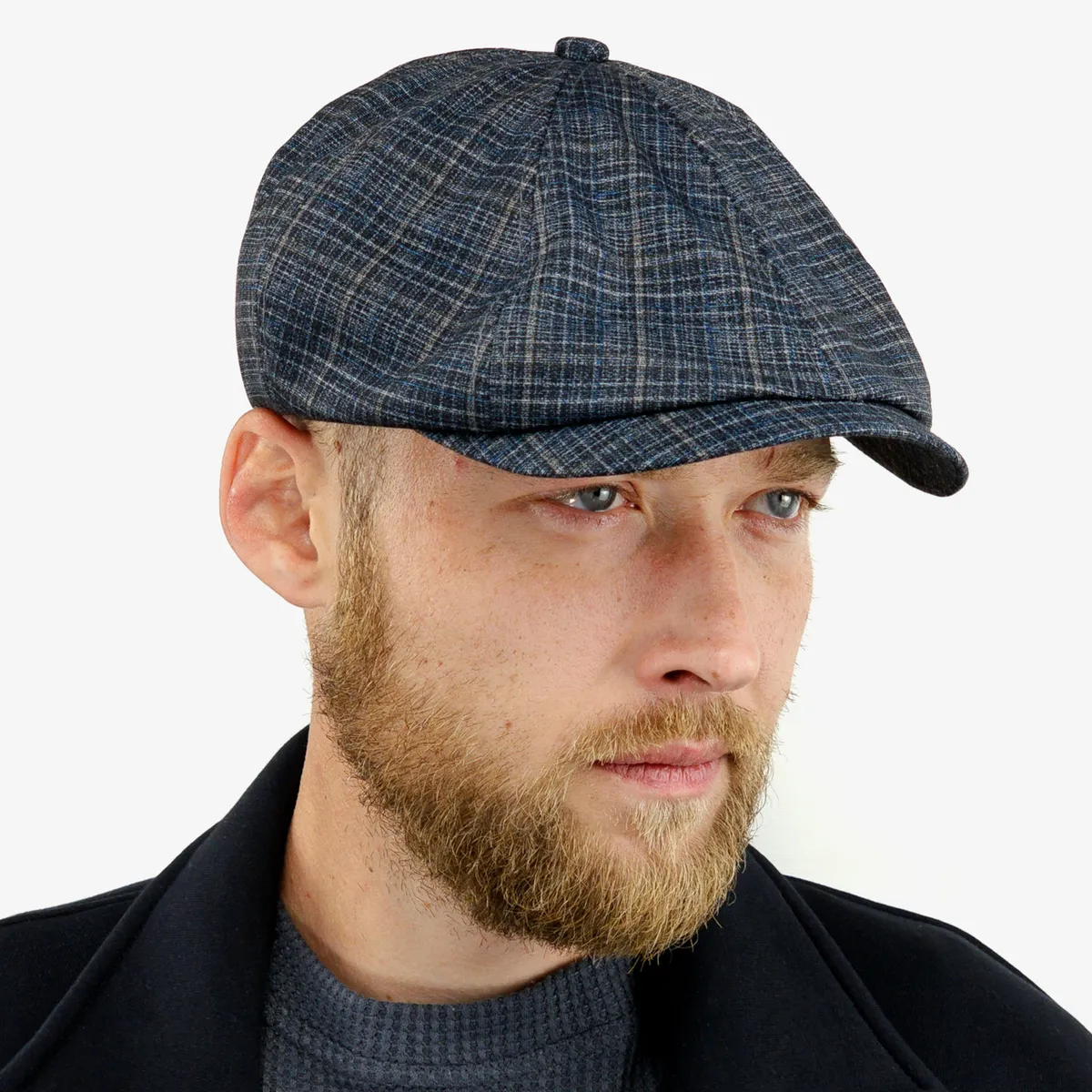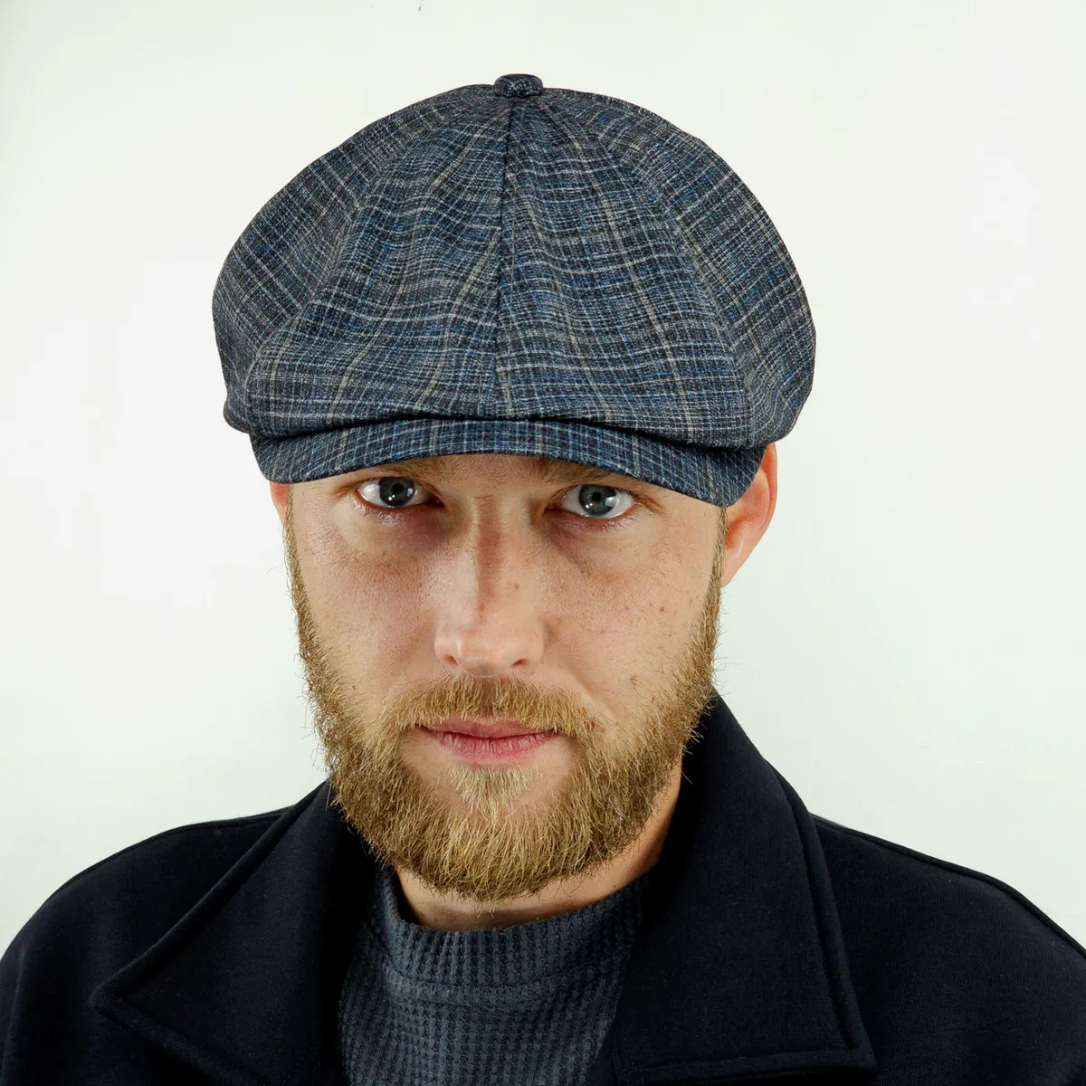 Демісезонна вовняна кепка восьмиклинка хуліганка в дрібну клітинку з подовженим дашком та напусками по бокам. Всередині бавовняна підкладка. Практичний колір та принт в клітинку дозволяє поєднувати кепку з Вашим гардеробом. Рекомендуємо на весну та осінь.