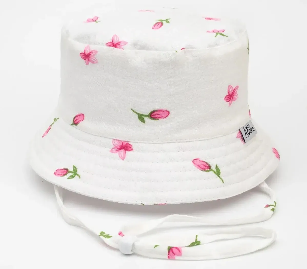 Літня муслінова панама з зав’язками з принтом Тюльпани. Якісний матеріал захищає від сонячних променів і забезпечує обіг повітря для запобіганню запотівання. Рекомомендуємо на вік від 3-х до 6 місяців.