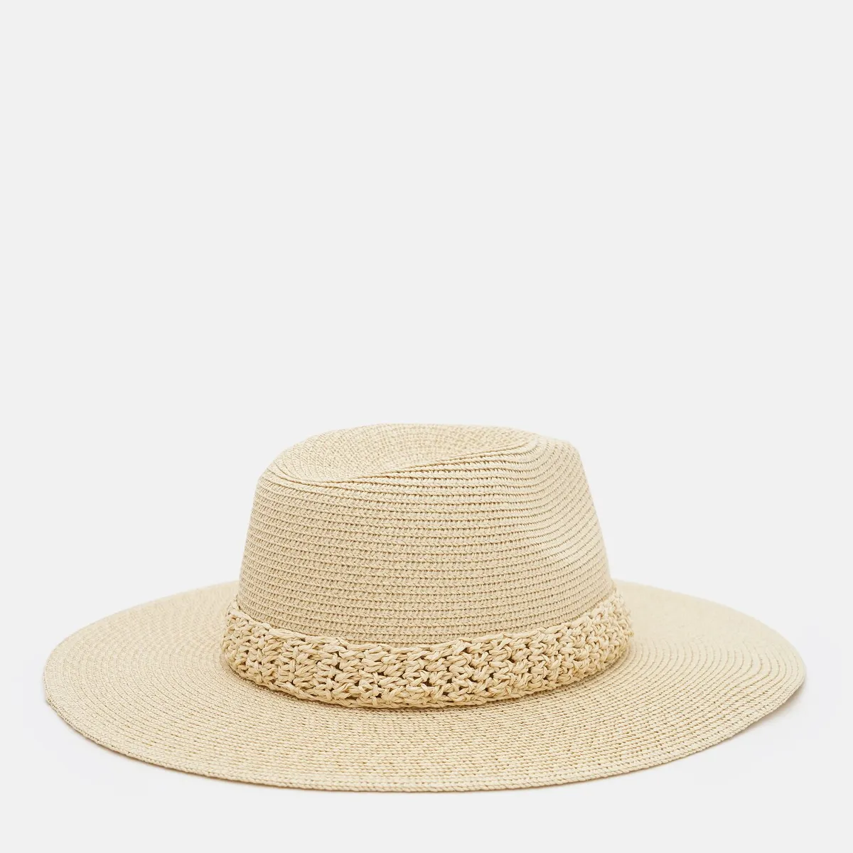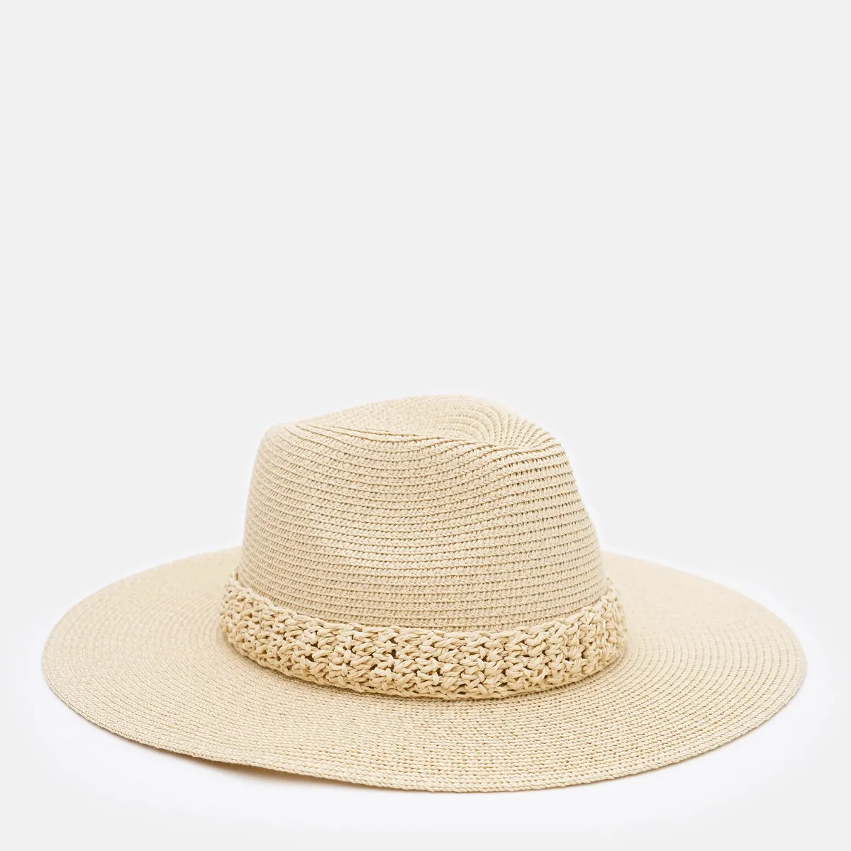 Капелюх Федора з плетеним обідком Fortune 55-57 Топлене молоко SM276