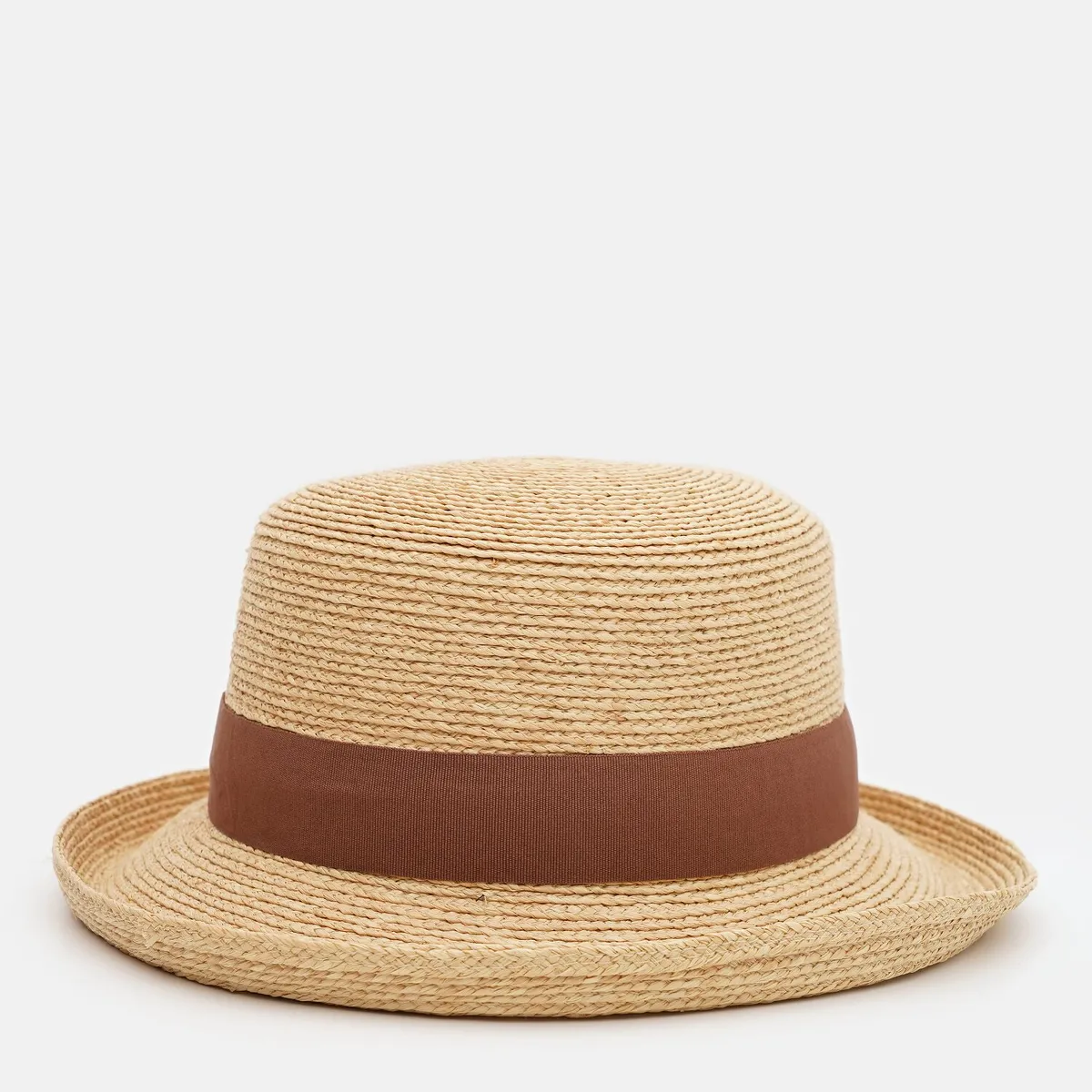 Капелюх канотьє з зігнутими вгору полями Fortune 55-58 Бежевий з коричневим SM385