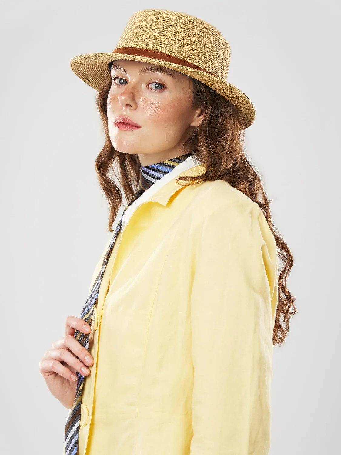 Капелюх канотьє з ремінцем. Має середні поля та тулію з плоским верхом. Має шнурівки для фіксації на шиї. Зроблений з дихаючої матерії з захистом від ультрафіолету. Всередині є регулятор — липучка. Ідеальне рішення для довершення пляжного образу, відпочинку та підійде для прогулянок та щоденного носіння. Догляд — вологою губкою з додаванням делікатного плину при потребі.