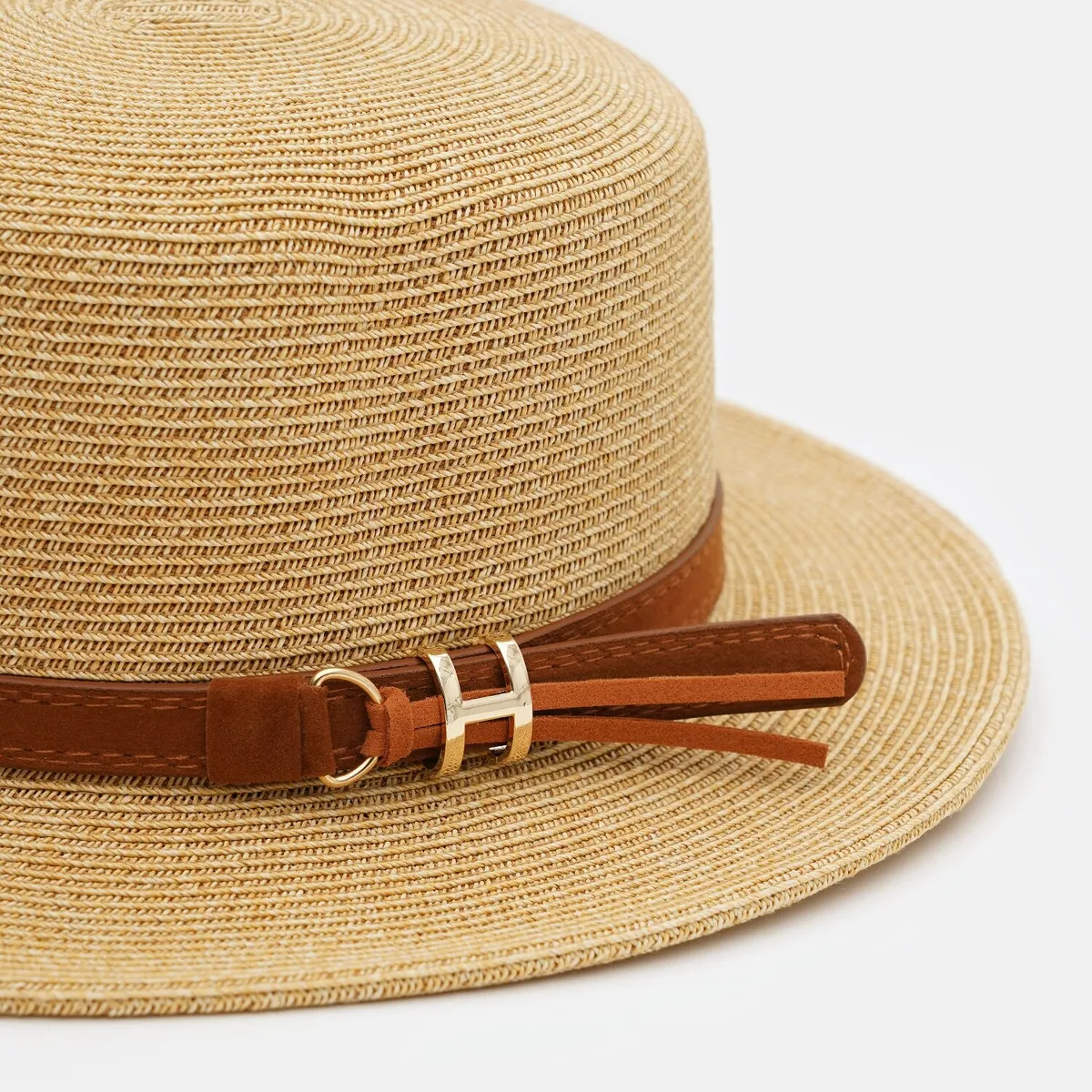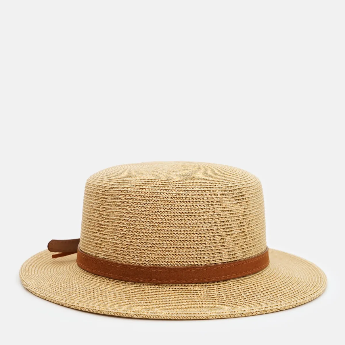 Капелюх канотьє зі ремінцем Fortune 55-57 Бежевий з коричневим SM213