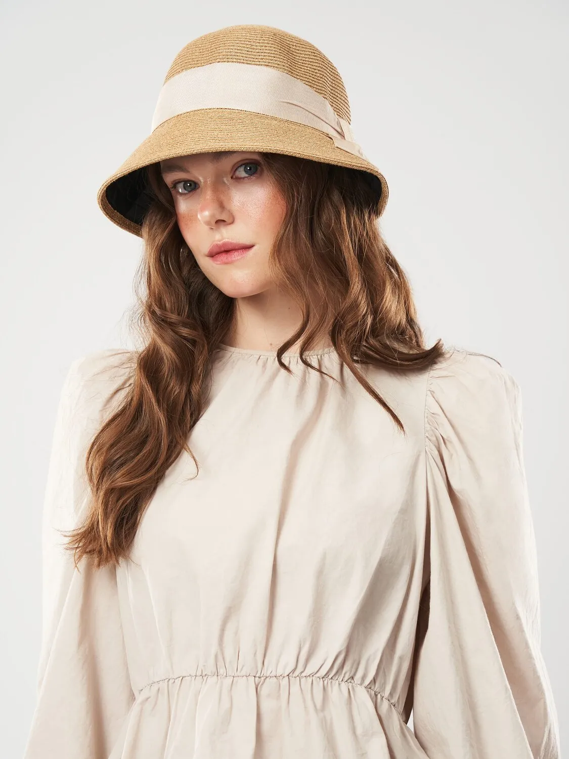 Капелюх клош з стрічкою Fortune 55-57 Бежевий з молочним SM314