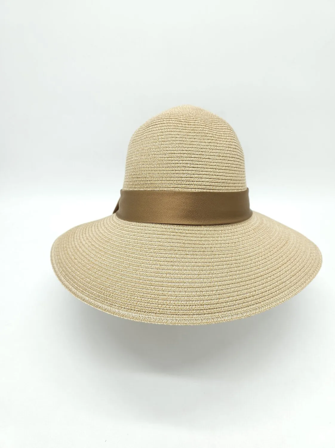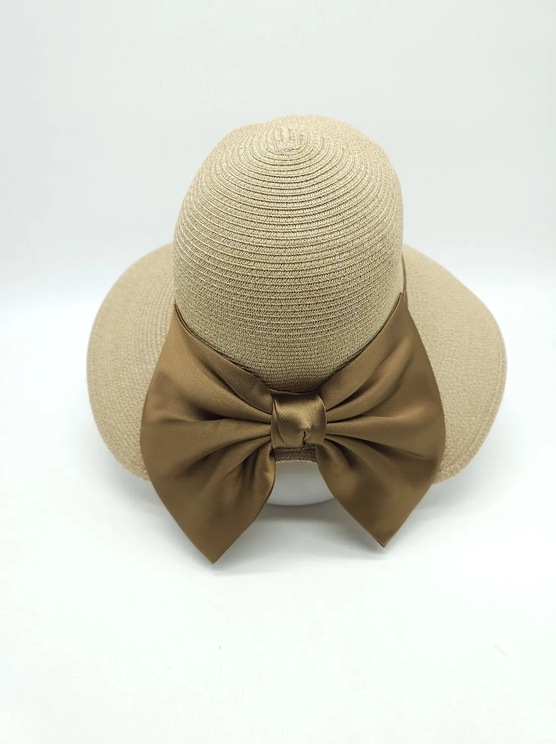 Жіночий капелюх клош з широкими полями та бантом. Поля опущені донизу та можуть регулювати положення. Всередині є регулятор — липучка. Зроблений з дихаючої матерії з захистом від ультрафіолету. Має пам'ять полів для фіксації. Рекомендується як елемент щоденного стилю так і для довершення модного образу. Ідеальне рішення для відпочинку. Догляд — вологою губкою з додаванням делікатного плину при потребі.