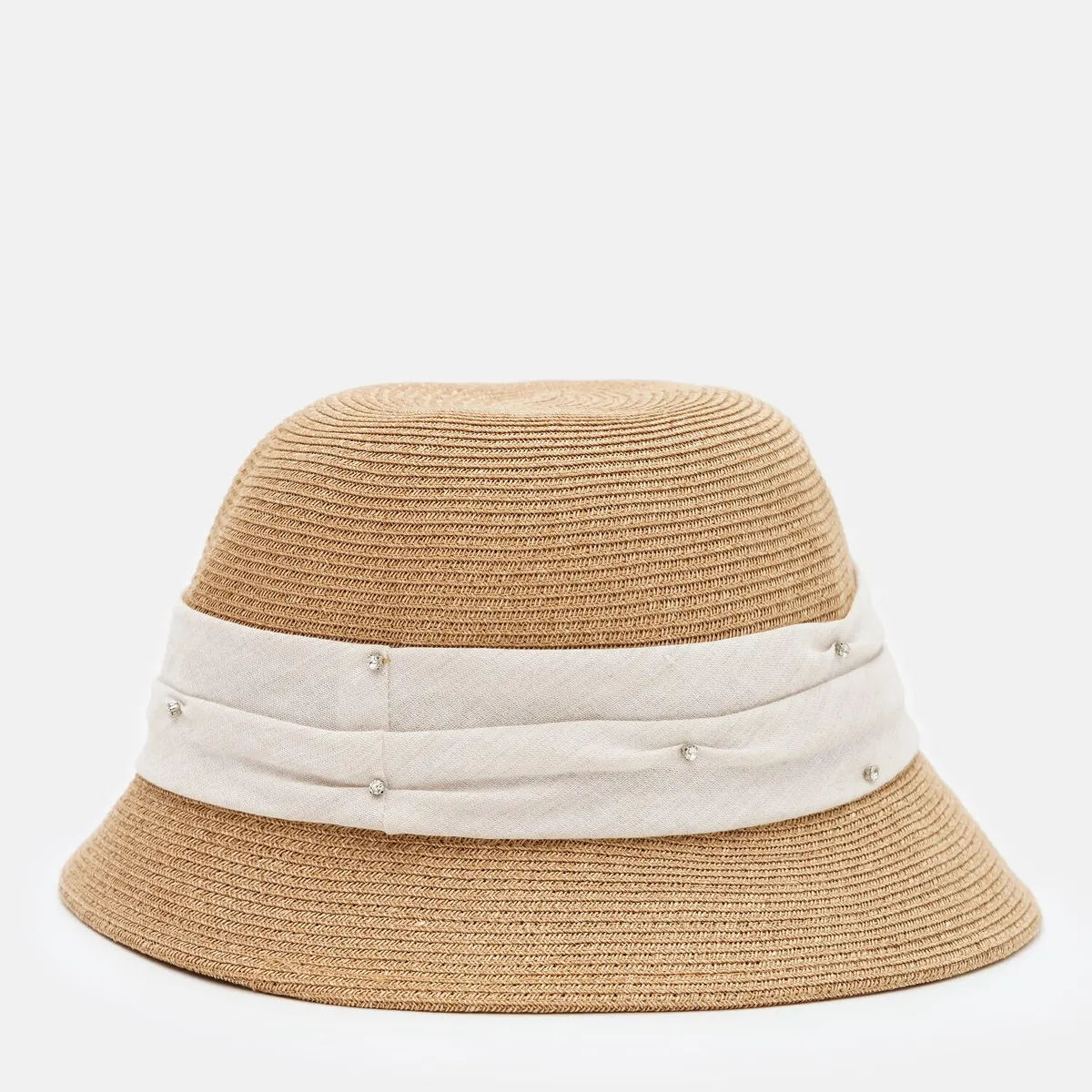 Капелюх клош з стрічкою та стразами Fortune 55-57 Бежевий з білим SM144