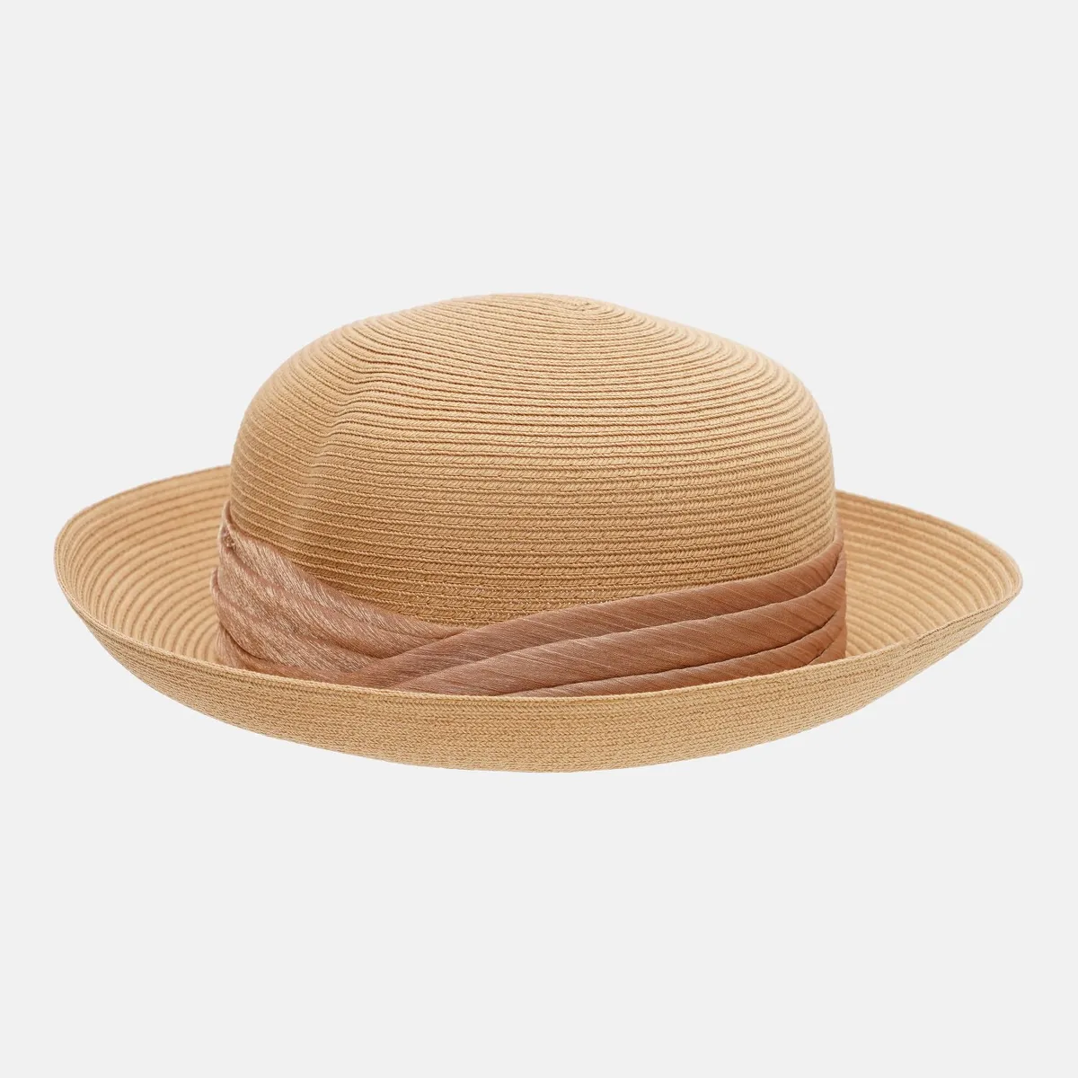 Капелюх клош з стрічкою та стразами Fortune 55-57 Бежевий SM315