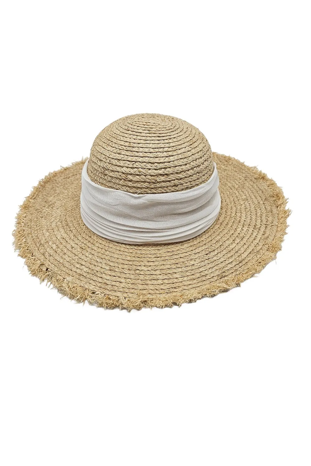 Капелюх солом’яний з стрічкою та бахромою Fortune 54-57 Бежевий з білим S396