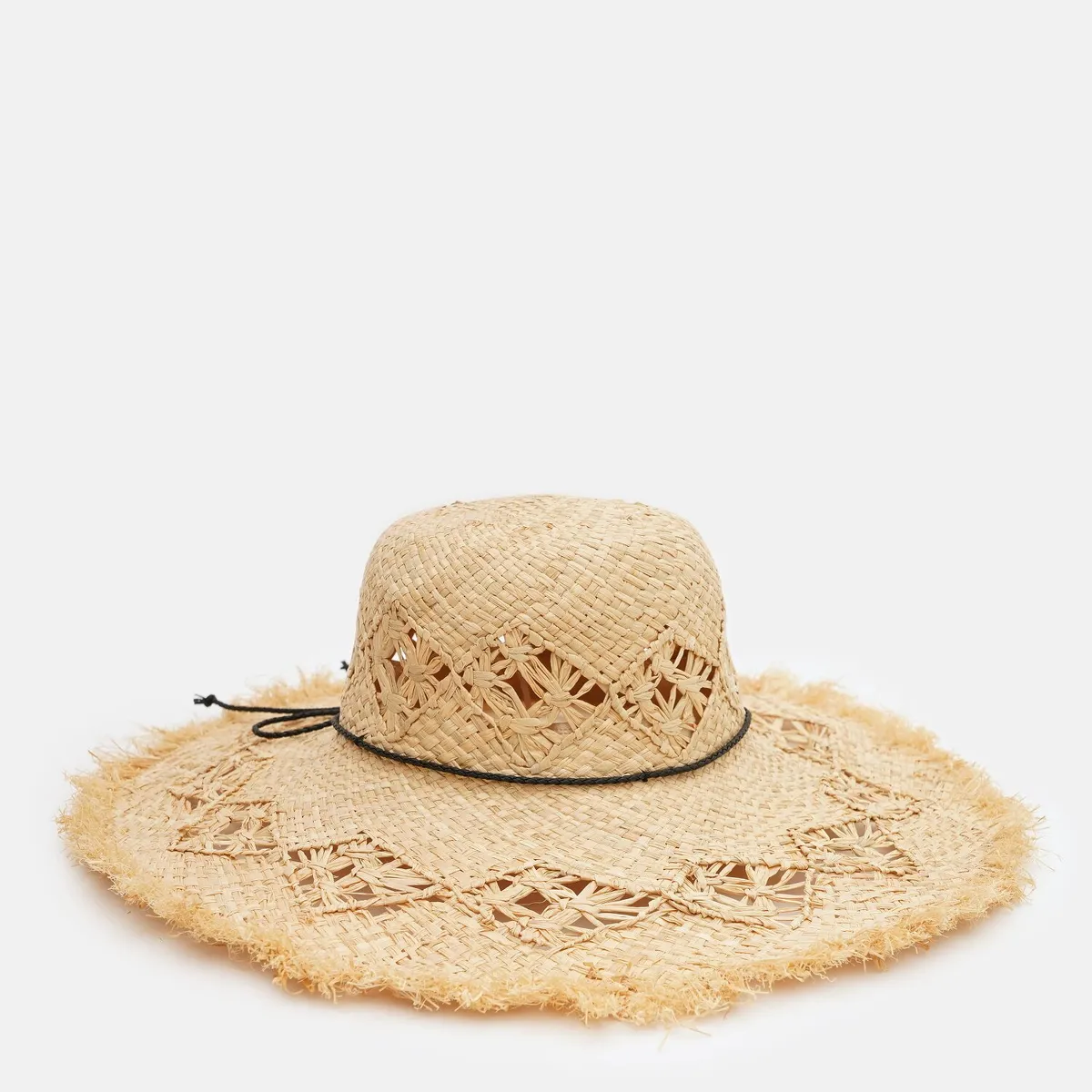 Капелюх солом’яний широкополий однотонний з стрічкою та бахромою. Має середні поля та тулію з округлим верхом. Зроблений з дихаючої матерії з захистом від ультрафіолету. Всередині є регулятор — утяжка. Ідеальне рішення для довершення пляжного образу та відпочинку. Догляд - вологою губкою з додавання делікатного плину при потребі.