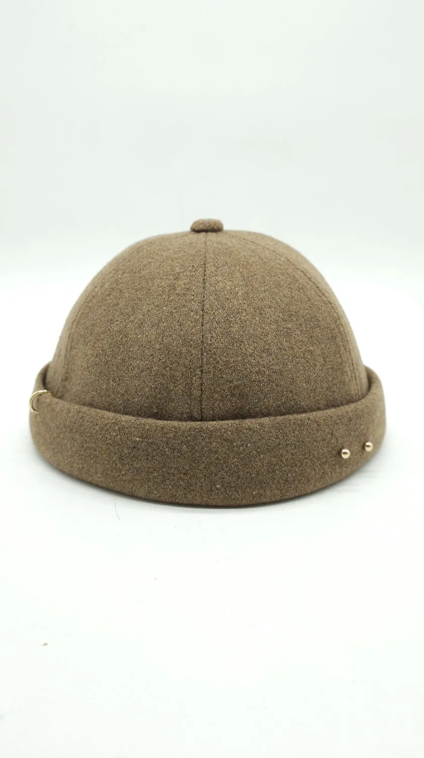 Кепка без козирка феска докер з високоякісного кашеміру. Має стильний пірсинг у фронтальній частині. Головний убір круглої форми без козирка. Має металевий регулятор. Docker cap носиться регулятором як спереду так і ззаду. Доповнить будь-який стильний образ та обов’язково приверне увагу оточуючих.