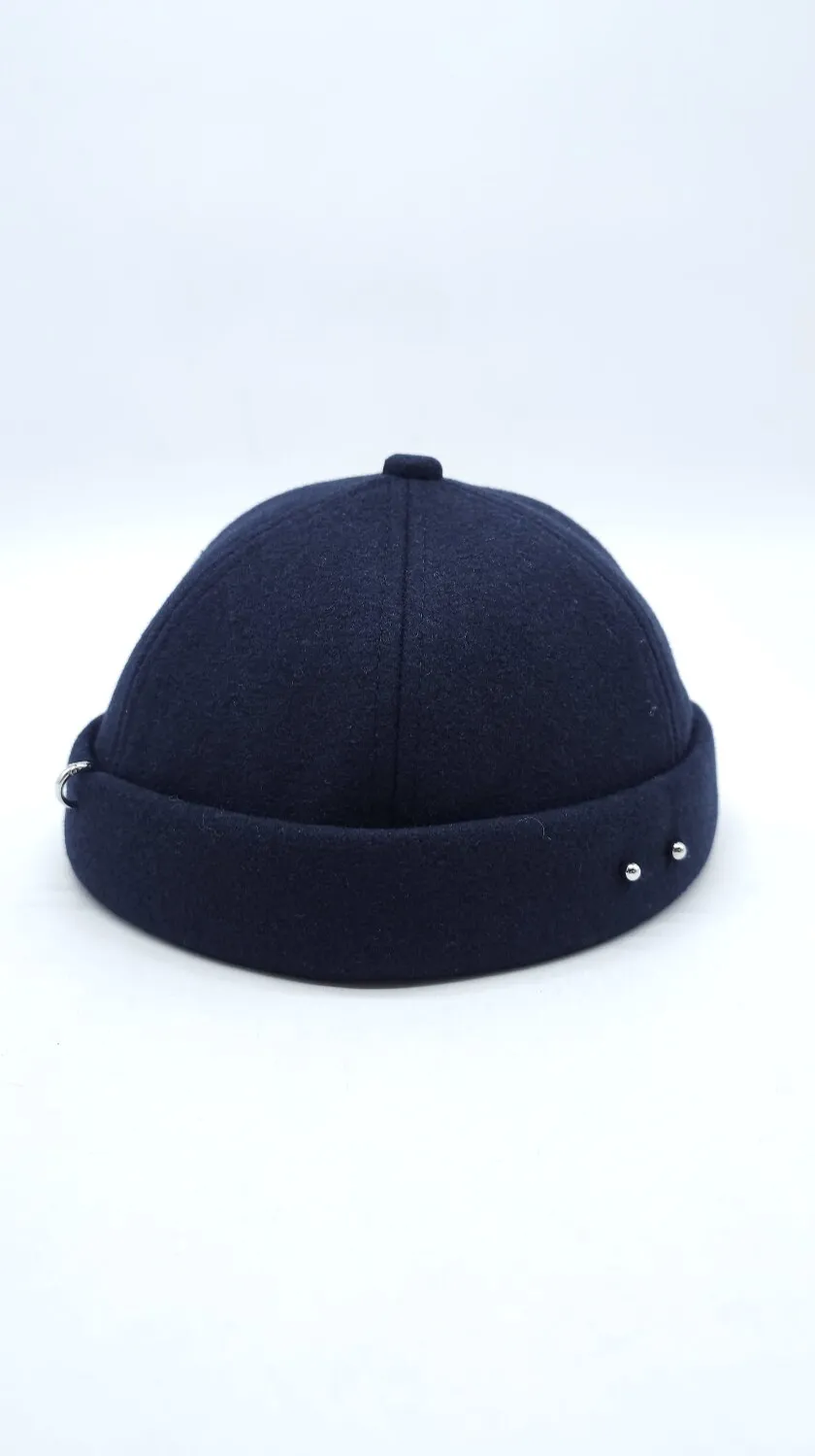 Кепка без козирка феска докер з високоякісного кашеміру. Має стильний пірсинг у фронтальній частині. Головний убір круглої форми без козирка. Має металевий регулятор. Docker cap носиться регулятором як спереду так і ззаду. Доповнить будь-який стильний образ та обов’язково приверне увагу оточуючих.