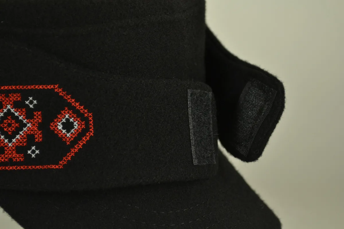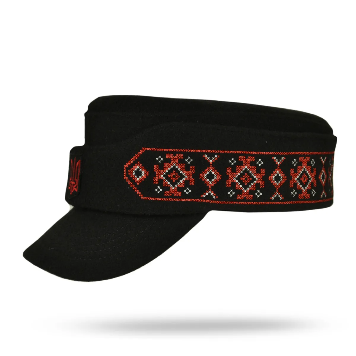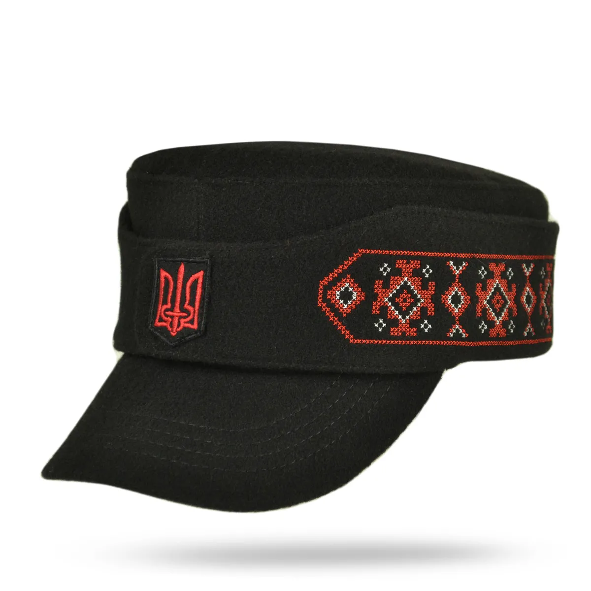Кепка німка мазепинка бандерівка австрійка кашемірова з кокардою та вишивкою VladAltex 56 Чорний 01460-19