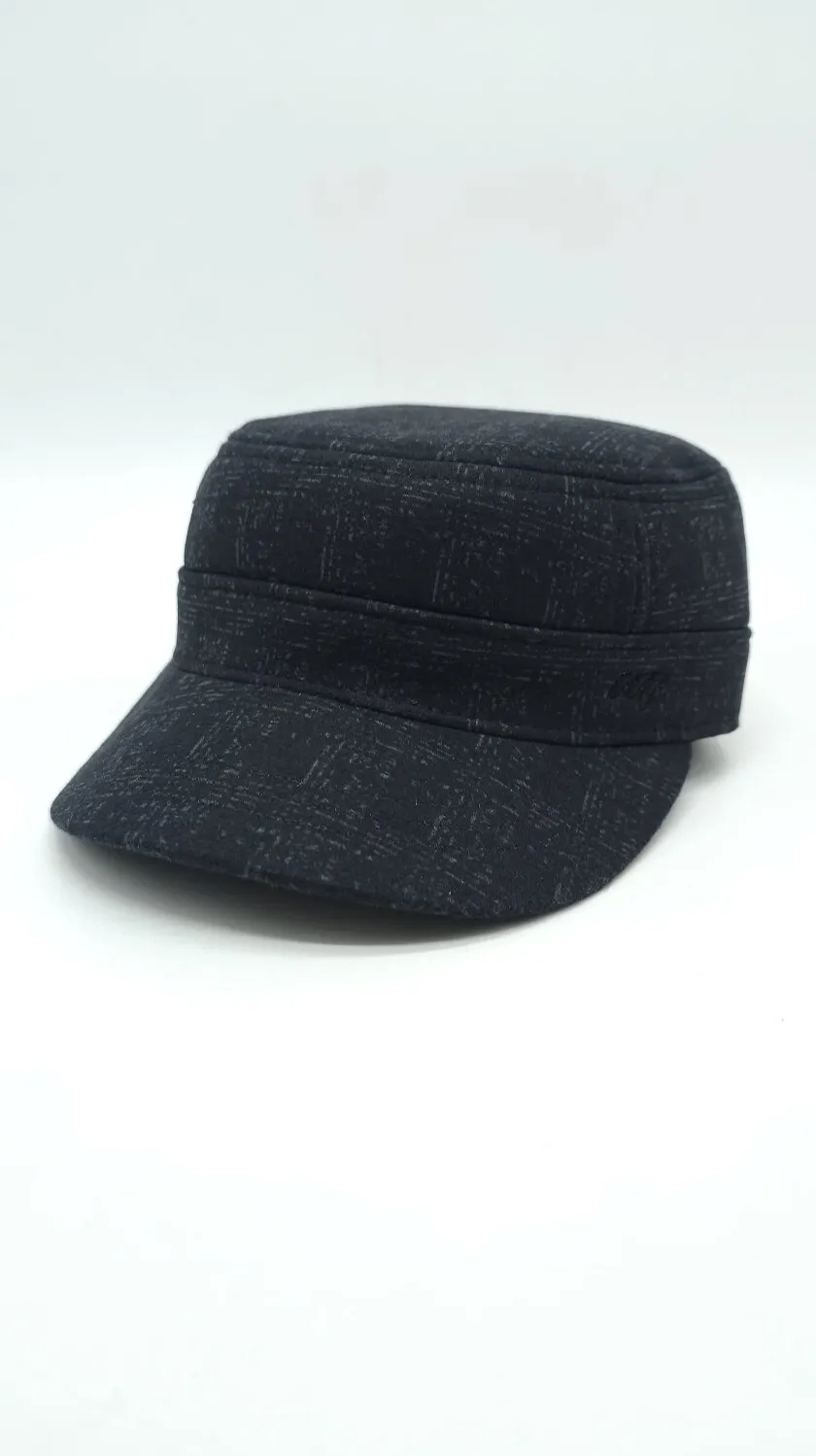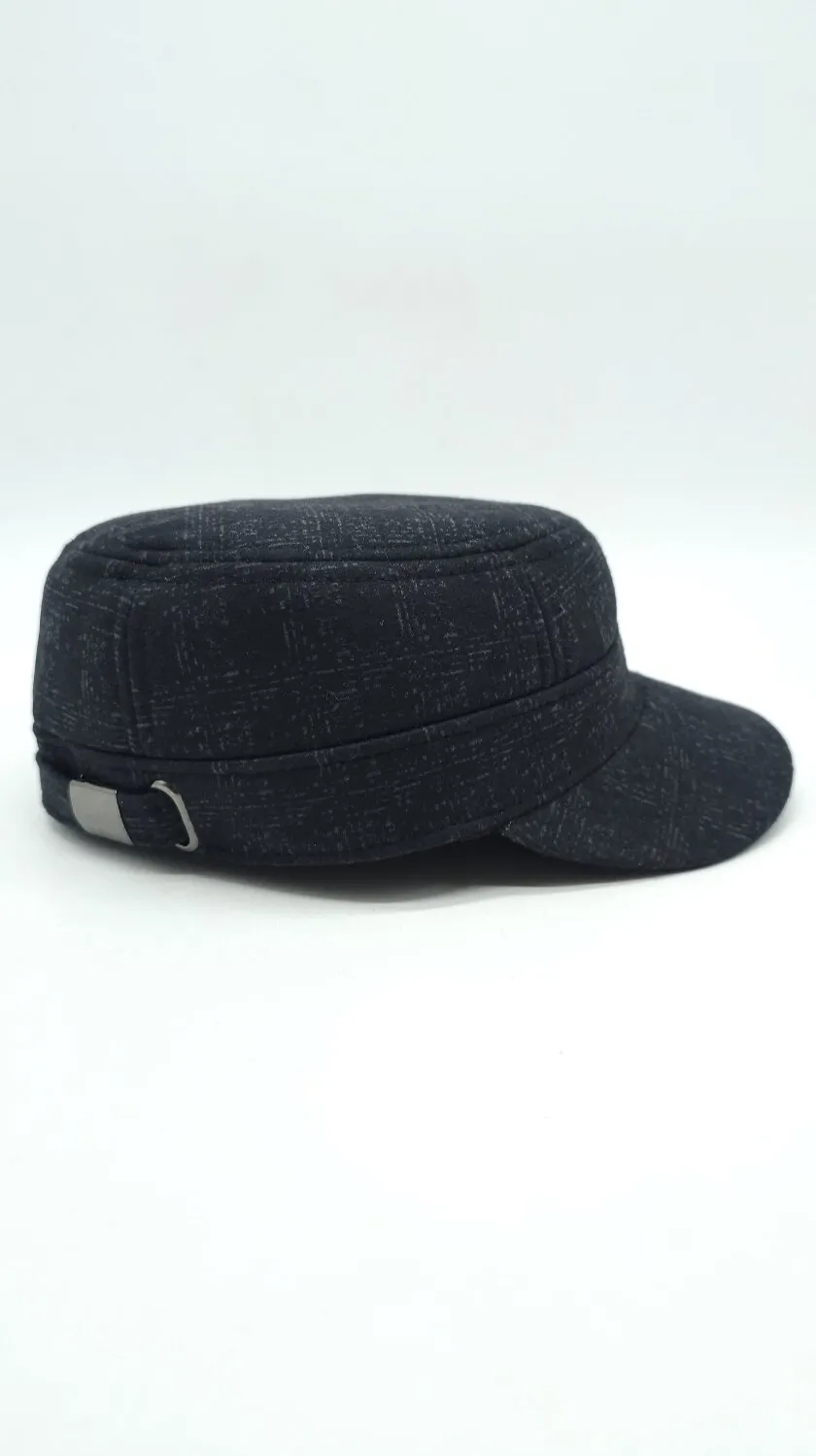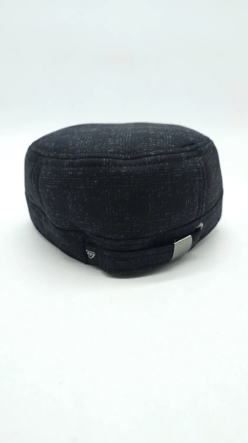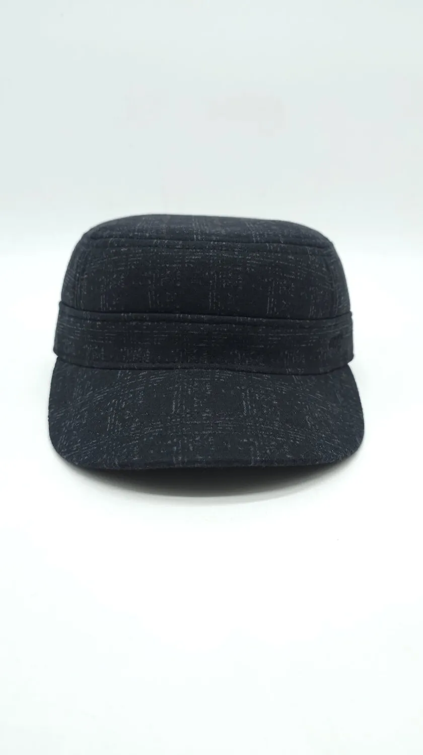 Кепка німка тіарова утеплена з вухами в приховану клітинку Mazur M/57-58 Чорний NK2-OR52