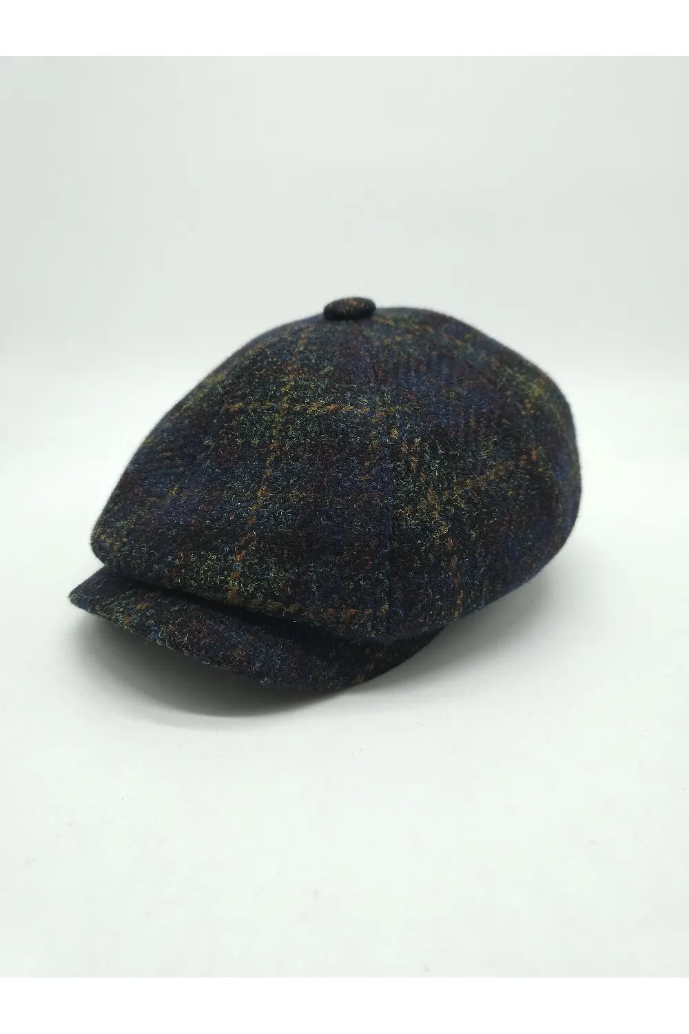 Кепка восьмиклинка хуліганка вовняна на ніжці в клітинку CH 55 Темно-синій Z-24/10