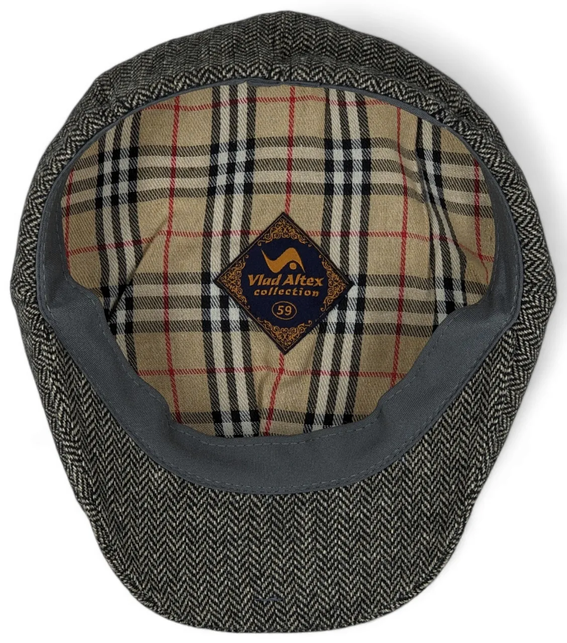 Демісезонна кепка восьмиклинка хуліганка з вовни в ялинку з подовженим дашком та напусками по бокам. Всередині бавовняна підкладка. Практичний колір та принт дозволяє поєднувати кепку з Вашим гардеробом. Рекомендуємо на весну та осінь.