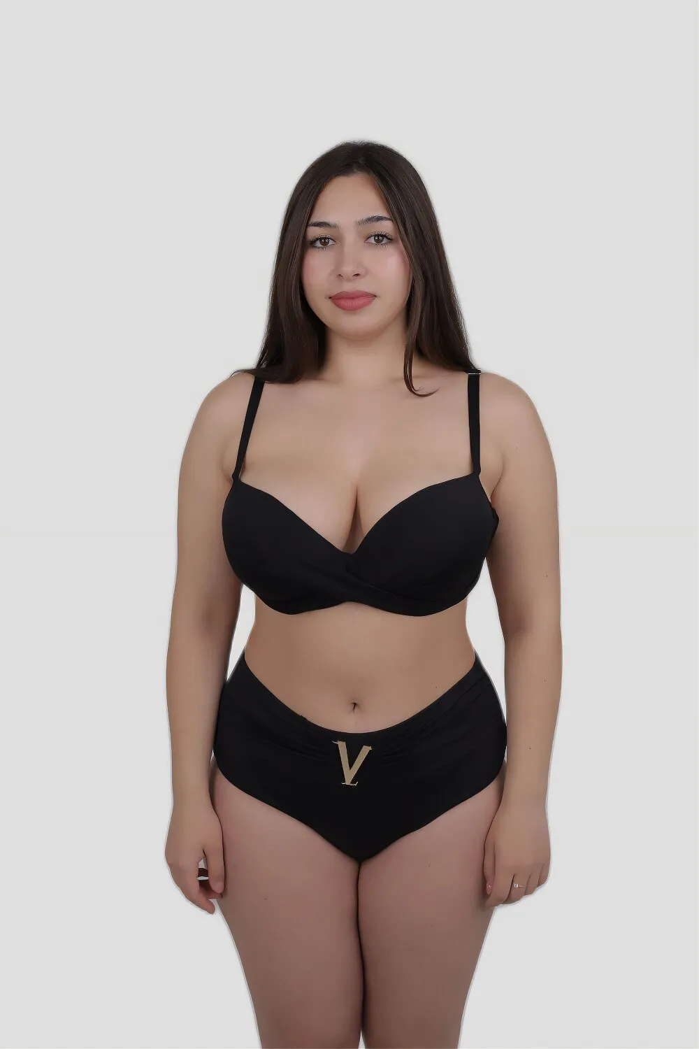 Купальник роздільний балконет з регульованими бретелями на металеву застібку. Ліф з поролоновою чашкою з вставним Push-up. Бретелі зручні та широкі. Плавки — високої посадки з поясом та металевим логотипом. Гігієнічна підкладка вздовж всього купальника. Матеріал якісний, еластичний та приємний до тіла.
