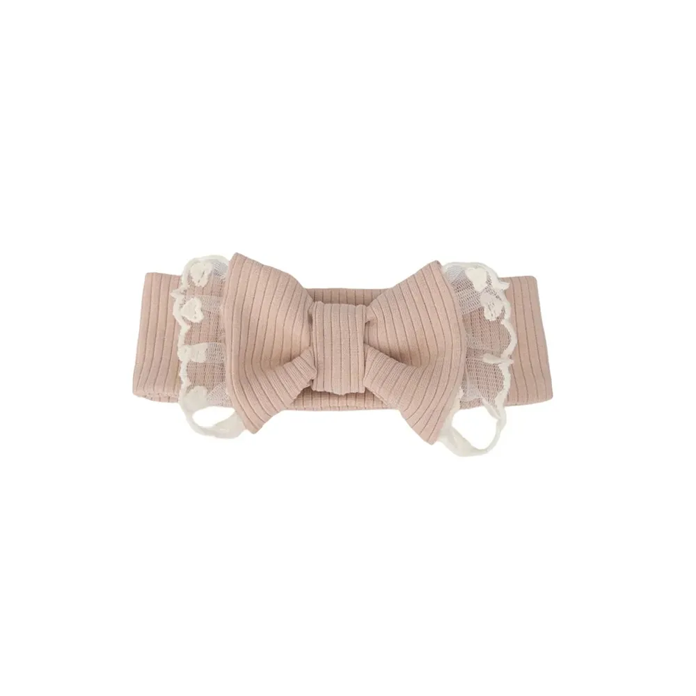 Пов’язка трикотажна для дівчинки з бантом та ажуром Лія Talvi 44-46 Світло-бежевий