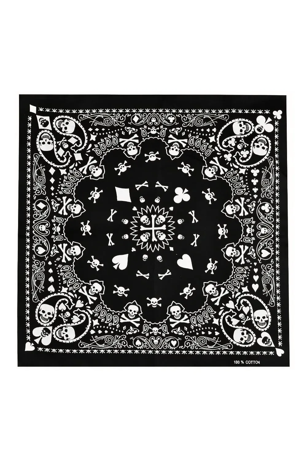Бандана платок повязка "черепы" карты 55х55 Черный 11552