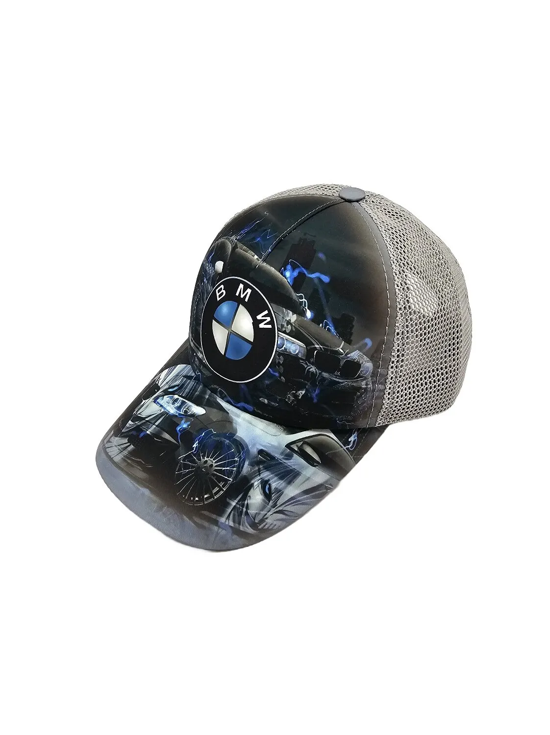 Бейсболка хлопковая с сеткой и рисунком BMW. Формированая фронтальная часть бейсболки. Качественный пошив изделия придает изделию чрезвычайное удобство. Регулятор - пластик.