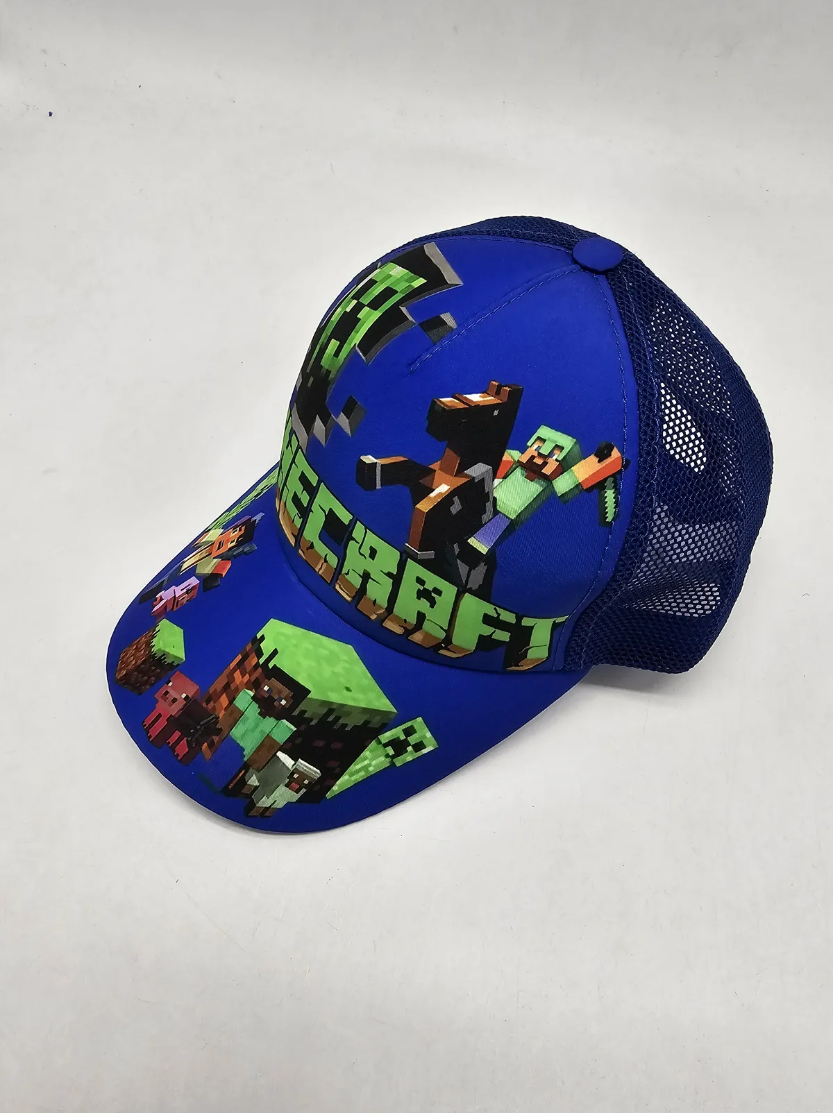 Бейсболка хлопковая с сеткой и рисунком Minecraft. Формированая фронтальная часть бейсболки. Качественный пошив изделия придает изделию чрезвычайное удобство. Регулятор - пластик.
