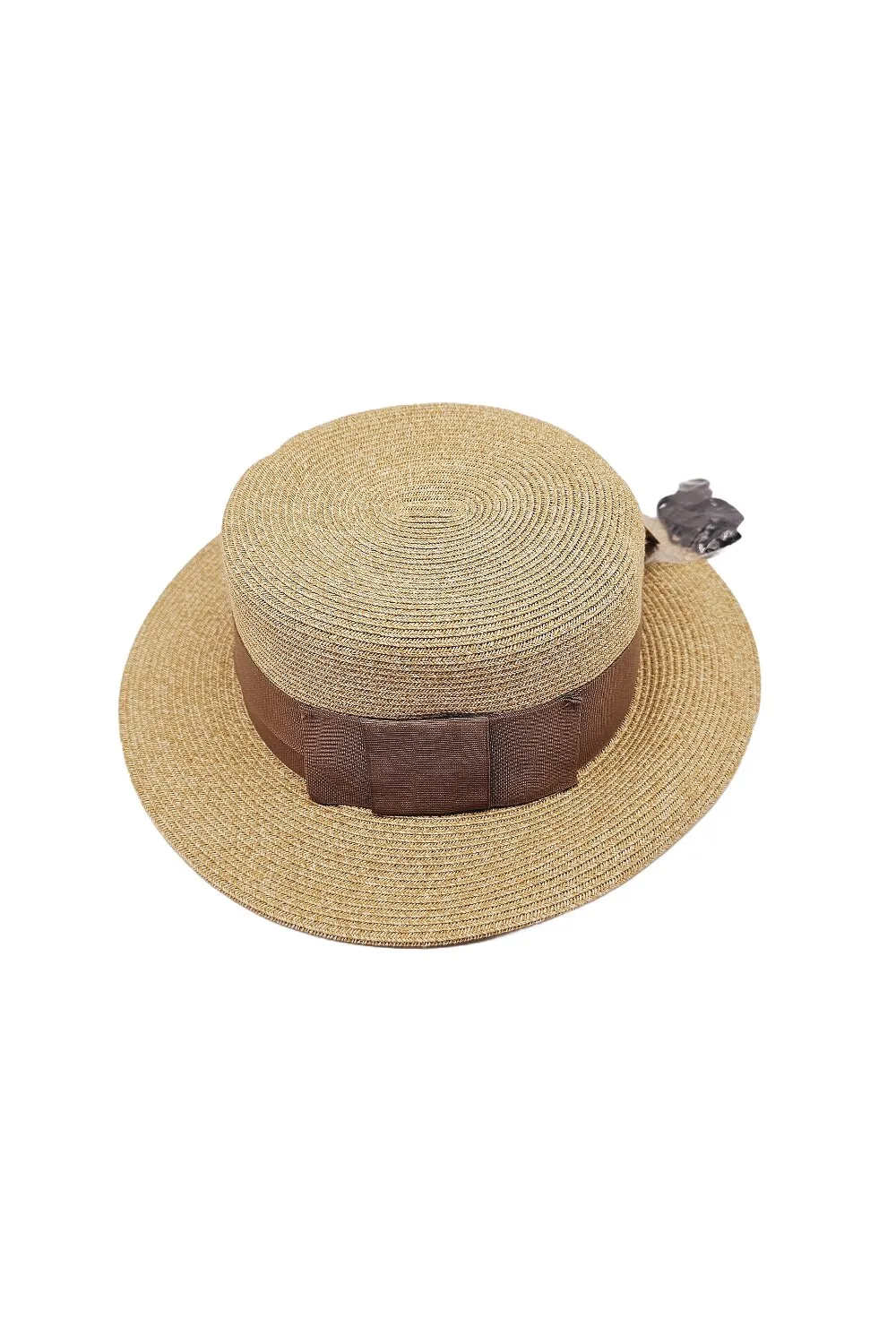 Шляпа соломенная канотье с бантом Fortune 56-58 Бежевый с кофейным S328