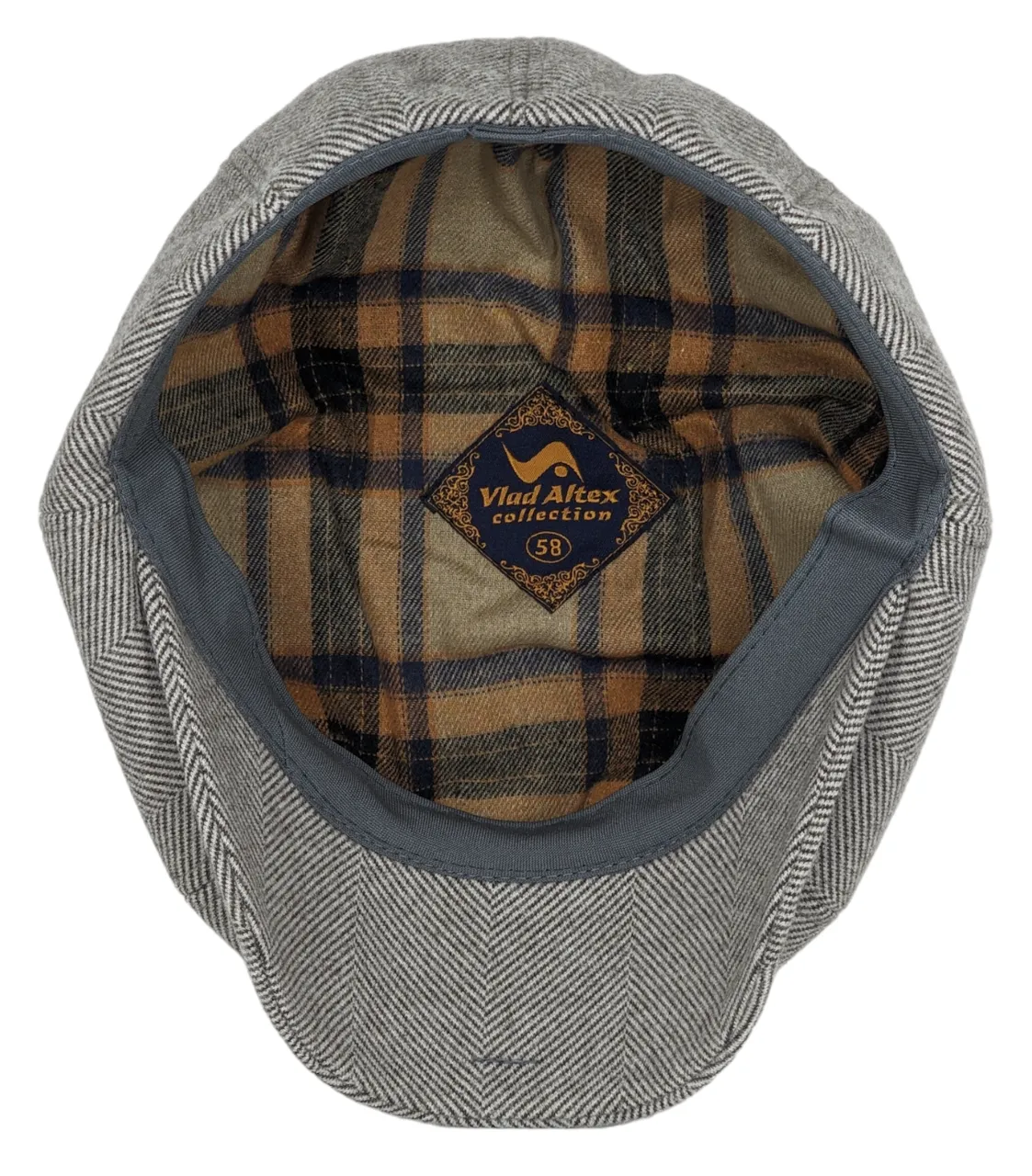 Классическая шерстяная кепка восьмиклинка хулиганка в ёлочку New Boy Гетсби с удлиненным козырьком и напусками по бокам. Внутри байковая и хлопковая подкладки. Практичный цвет и принт позволяют носить практически со всем гардеробом. Рекомендуется на осень и зиму.