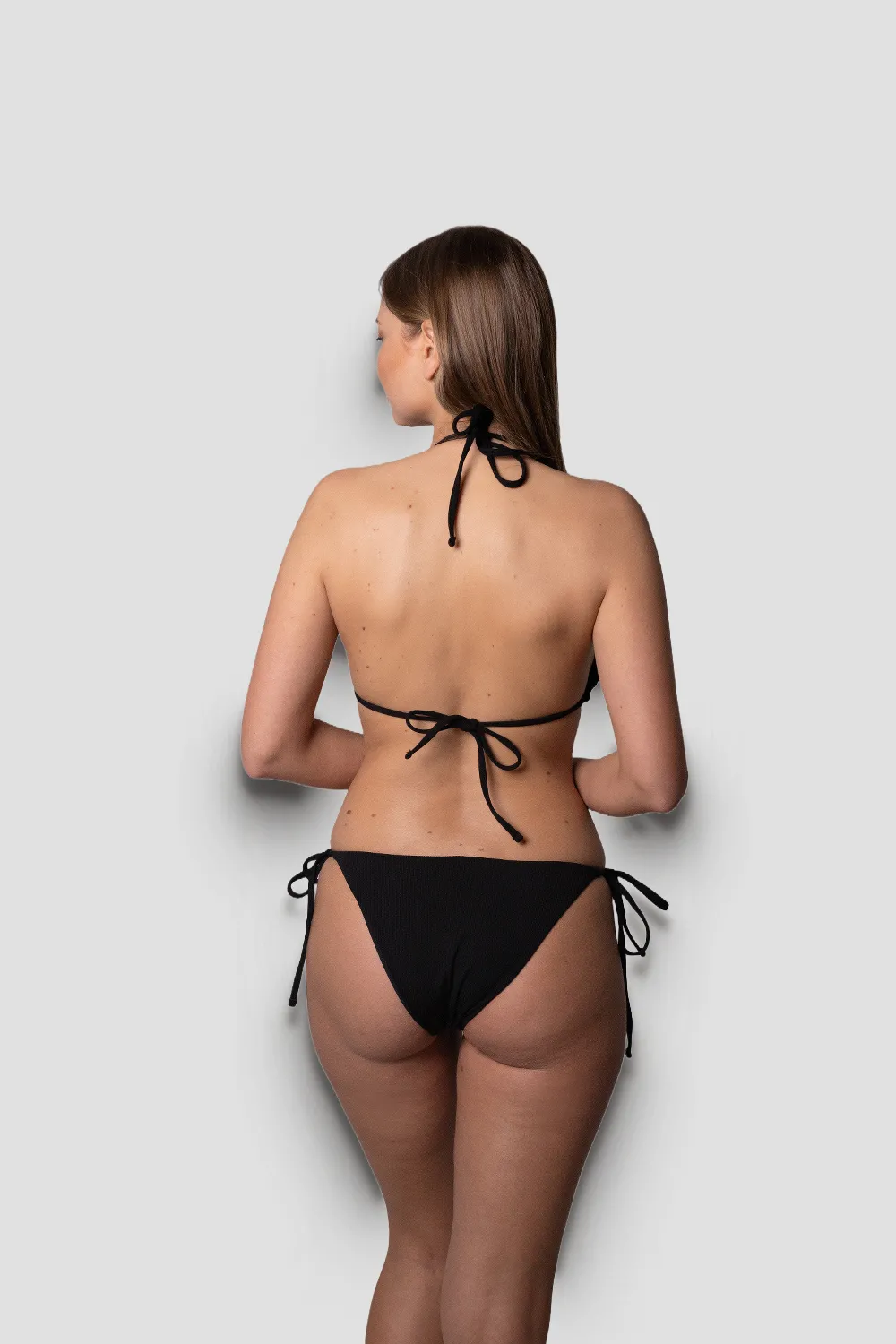 Купальник раздельный треугольниками на завязки в рубчик со съемной поролоновой вставкой. Плавки — ласточки на завязки низкой посадки с гигиенической подкладкой. Материал эластичный и приятный на ощупь.