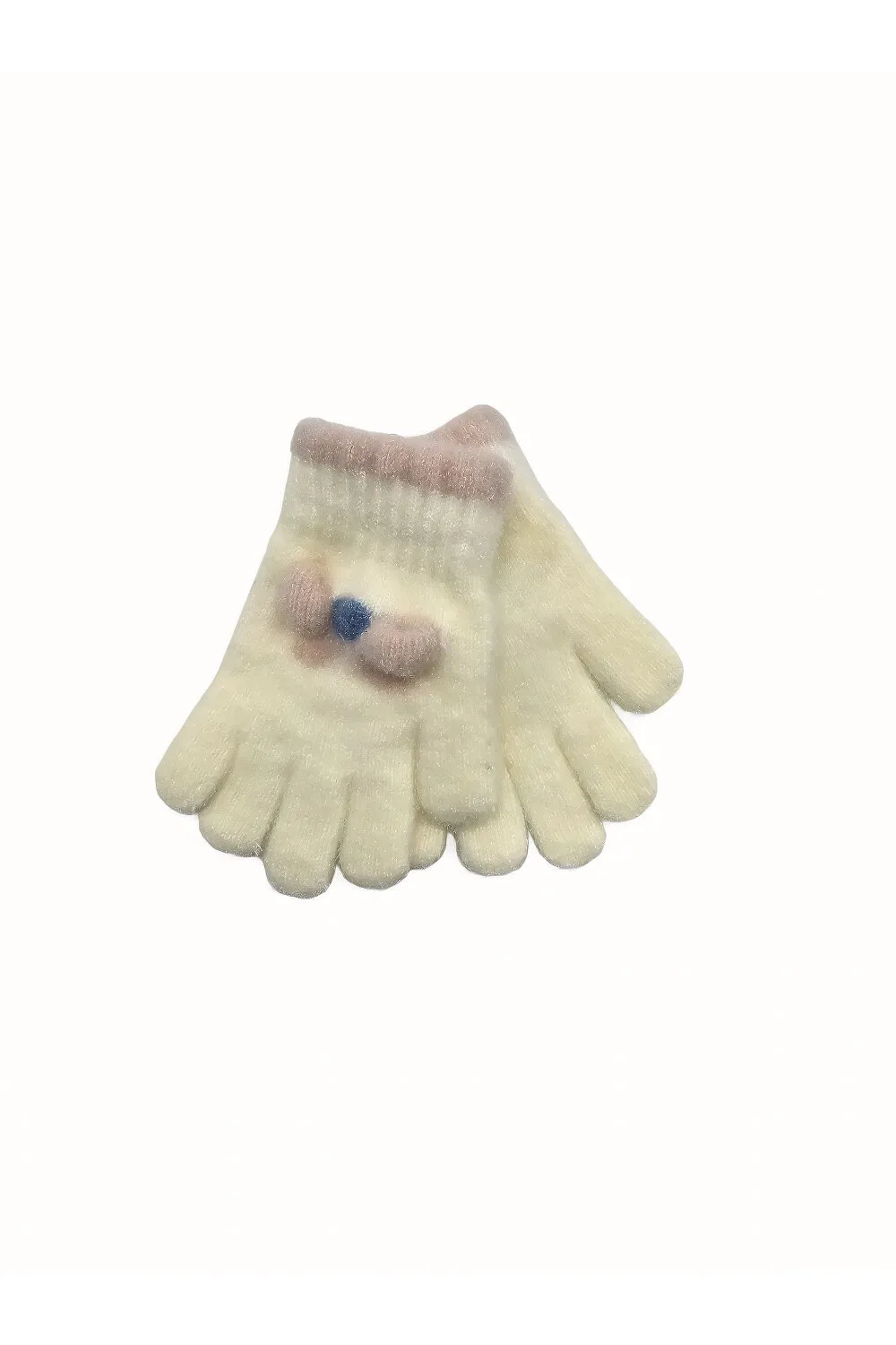 Перчатки вязаные для девочки с рисунком цветка на возраст 3-5 лет Молочный 15839