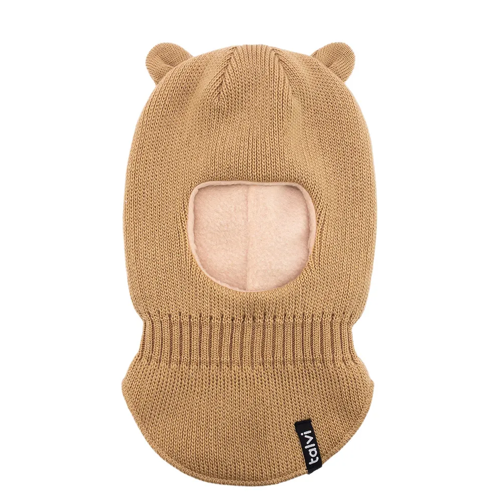 Шапка балаклава шлем вязаная с ушками на флисовой подкладке Мими Talvi 40-42 Бежевый 15870