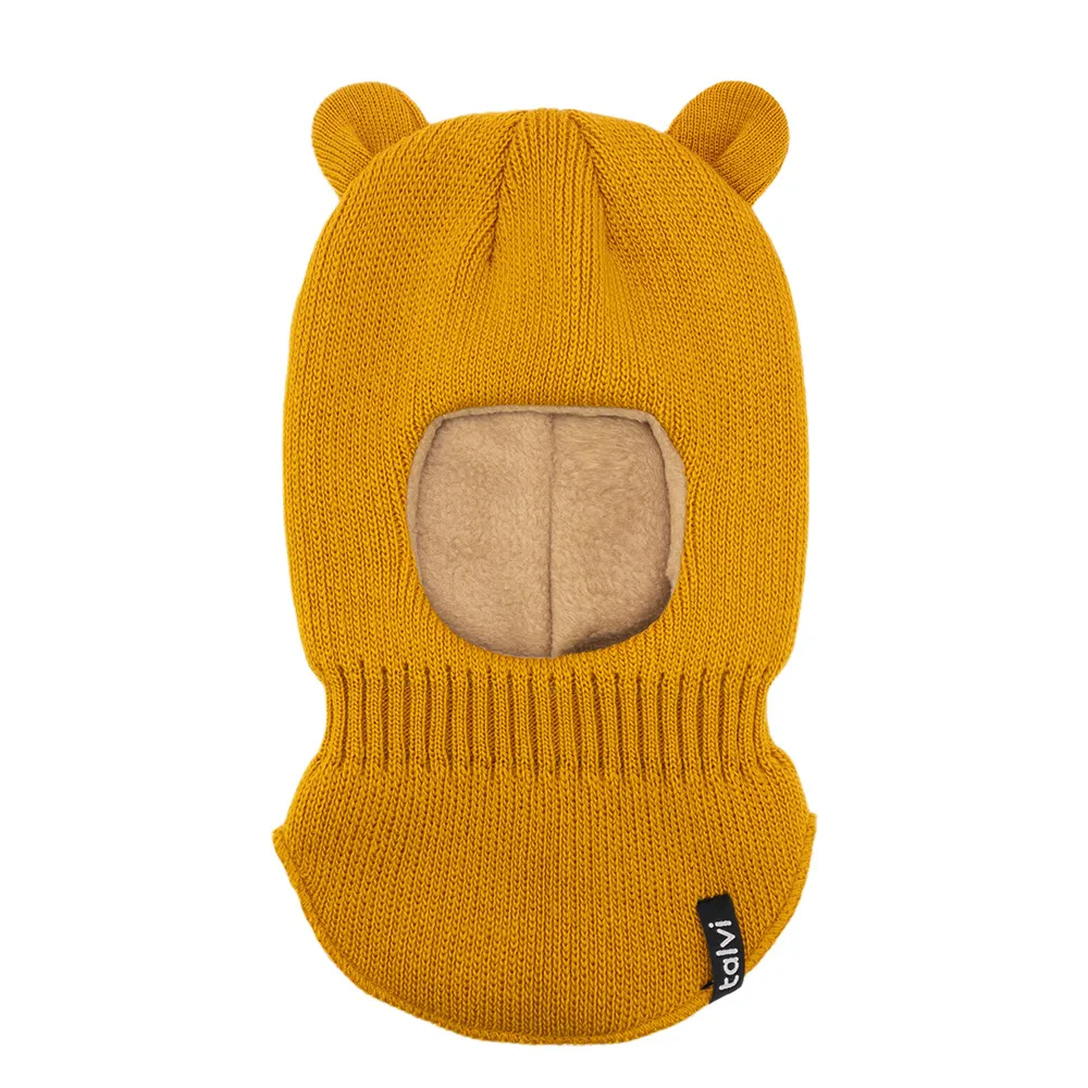 Шапка балаклава шлем вязаная с ушками на флисовой подкладке Мими Talvi 40-42 Горчичный 15868