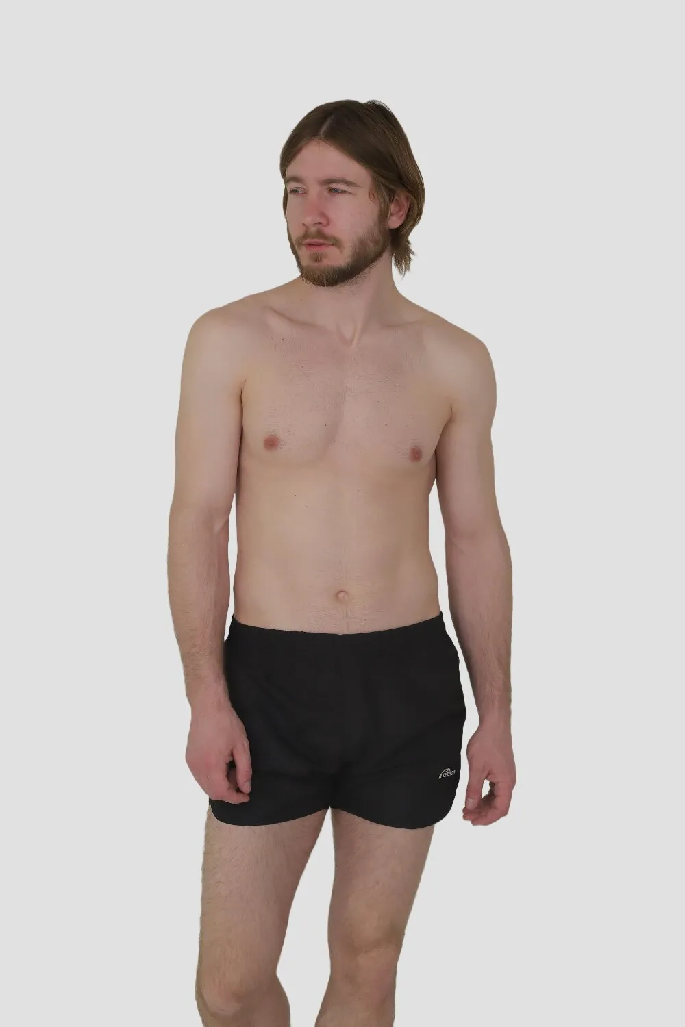 Шорты мужские для бега и занятий спортом. Подойдут для плавания. Имеют карманы на молнии снаружи и гигиеничекую сетку и шнуровки для фиксации посадки внутри. Качественный материал, который быстро высыхает. Спереди слева логотип.