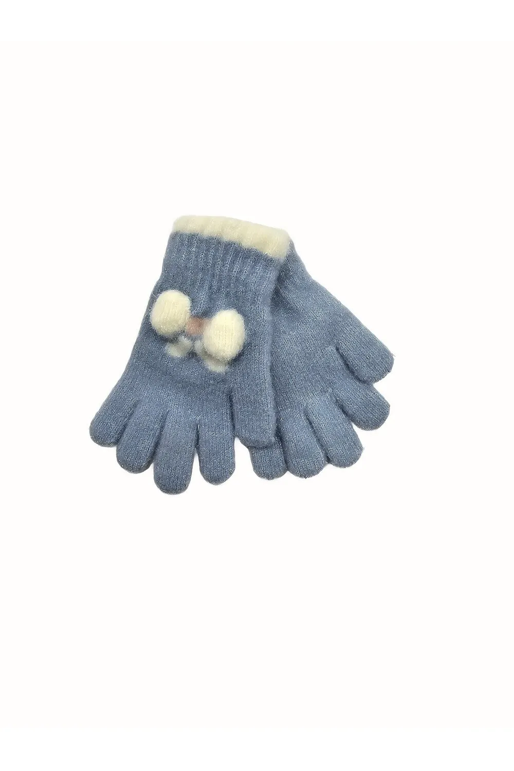 Рукавиці в’язані для дівчинки з малюнком квітки на вік 3-5 років Блакитний 15840