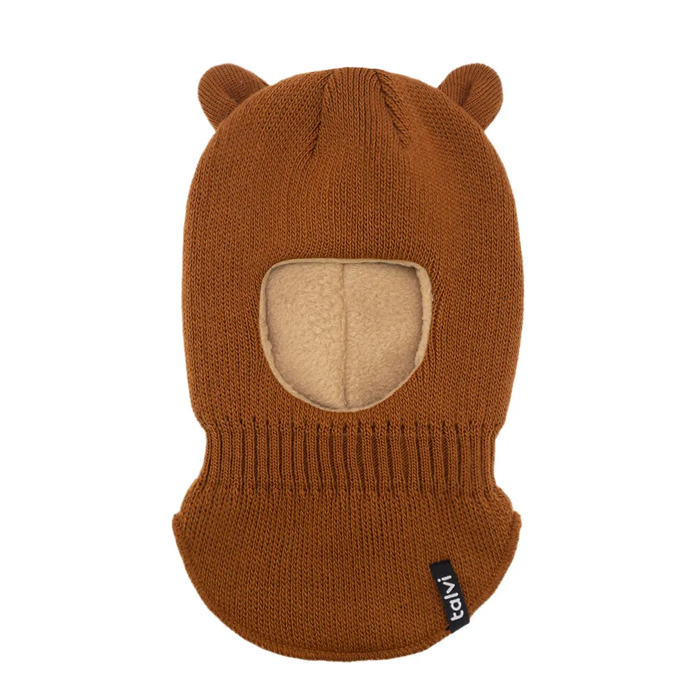 Шапка балаклава шолом в’язана з вушками на флісовій підкладці Мімі Talvi 40-42 Цегловий 15869