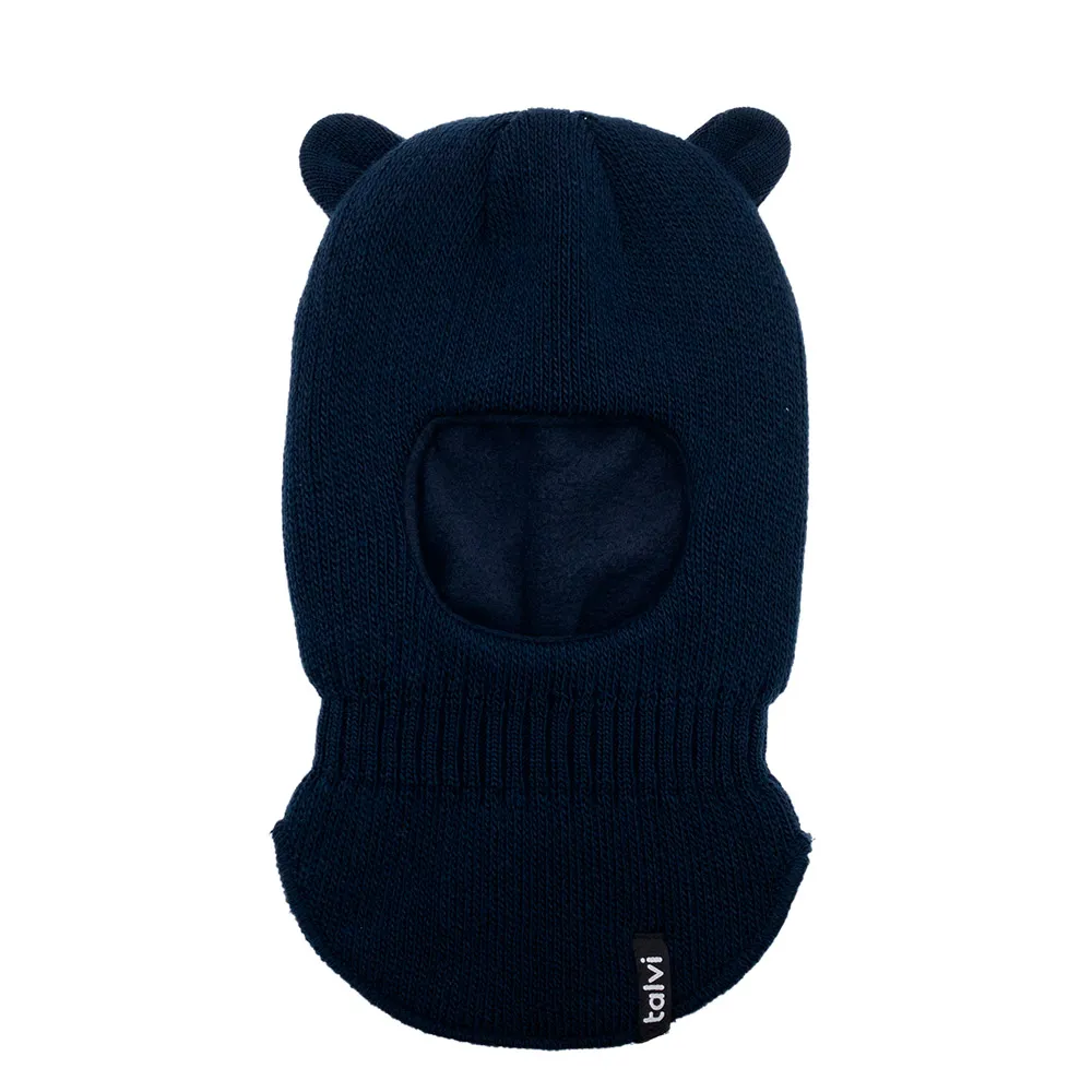 Шапка балаклава шолом в’язана з вушками на флісовій підкладці Мімі Talvi 40-42 Темно-синій 15865