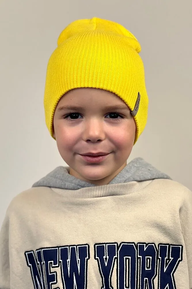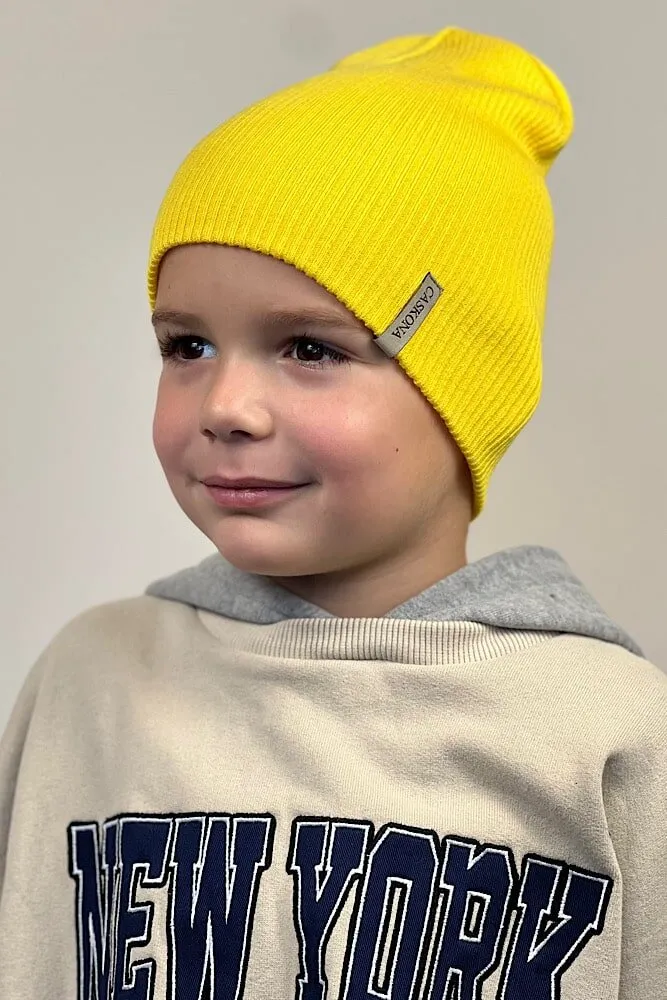 Шапка пряма подвійна подовжена дрібної в’язки в рубчик Flinn Cascona 50-55 Жовтий