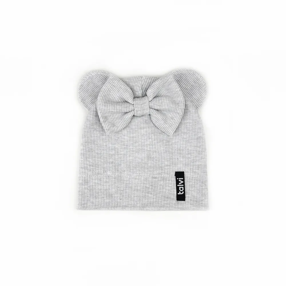 Шапка трикотажна для дівчинки з вушками та бантом Джаміля Talvi 46-48 Світло-сірий меланж 14636