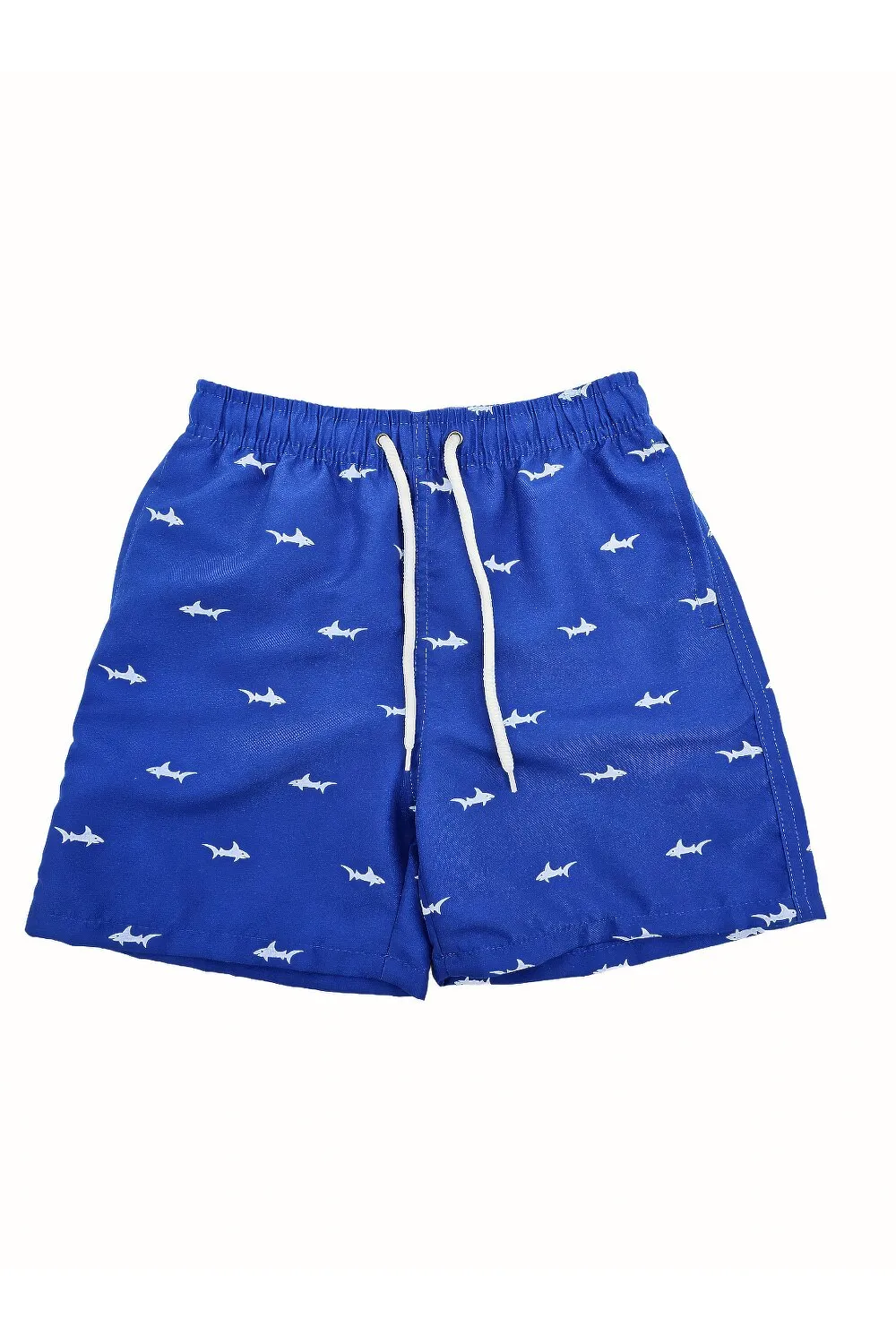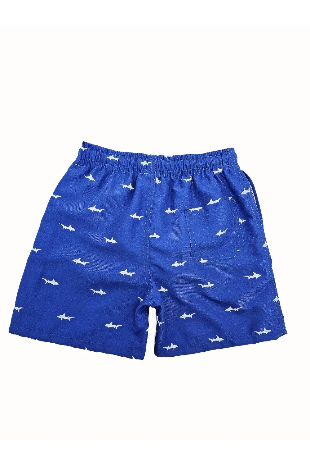 Шорти для плавання дитячі на резинці з принтом акули. Регулюються шнурівками та мають кишені по бокам та ззаду. Всередині гігієнічна сітка. Завдяки плащовому матеріалу добре носяться та швидше висихають. Рекомендовані для плавання, бігу та занять спортом.