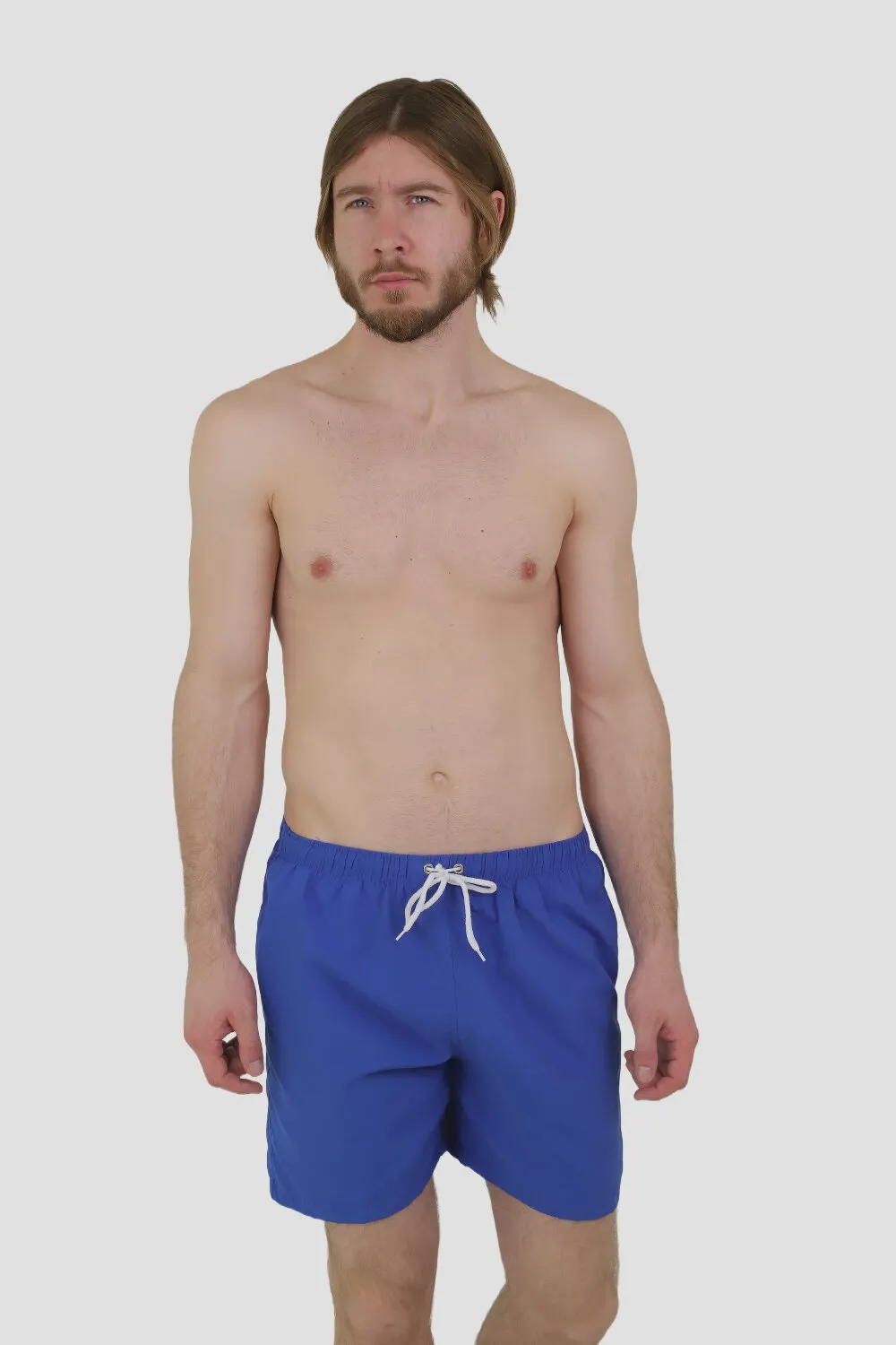 Шорти для плавання чоловічі однотонні на резинці. Регулюються шнурівками та мають кишені по бокам. В мокрому вигляді з’являється принт - якоря. Всередині гігієнічна сітка. Завдяки плащовому матеріалу добре носяться та швидше висихають. Рекомендовані для плавання, бігу та занять спортом.
