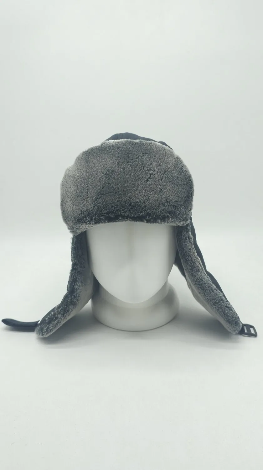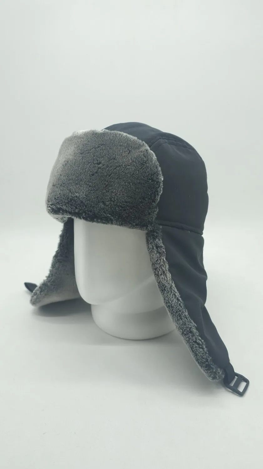 Вушанка чоловіча хутряна на застібку XL Чорний з сірим